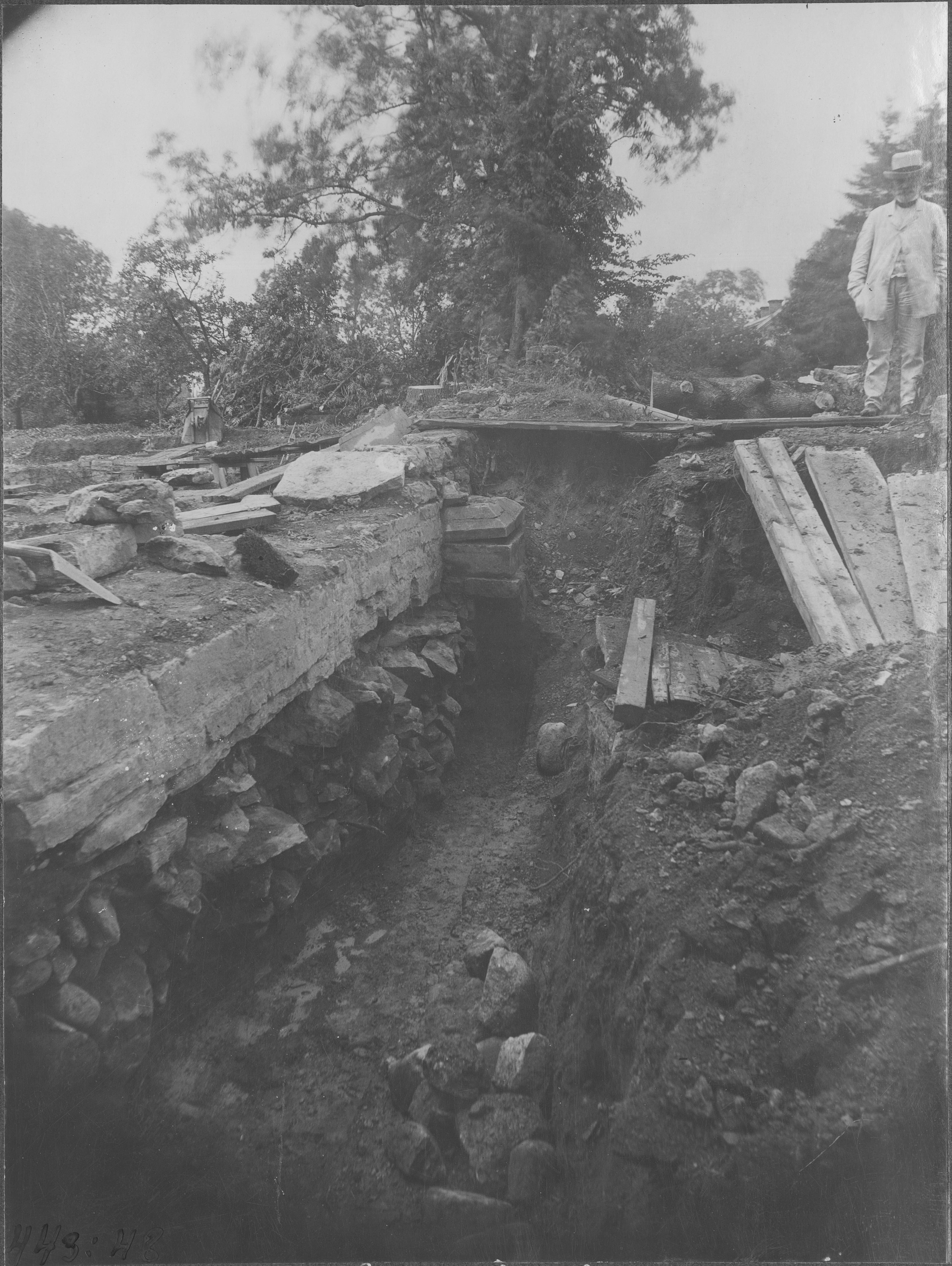Beskrivning: Sakristian. Grundmur synlig, mot öster.