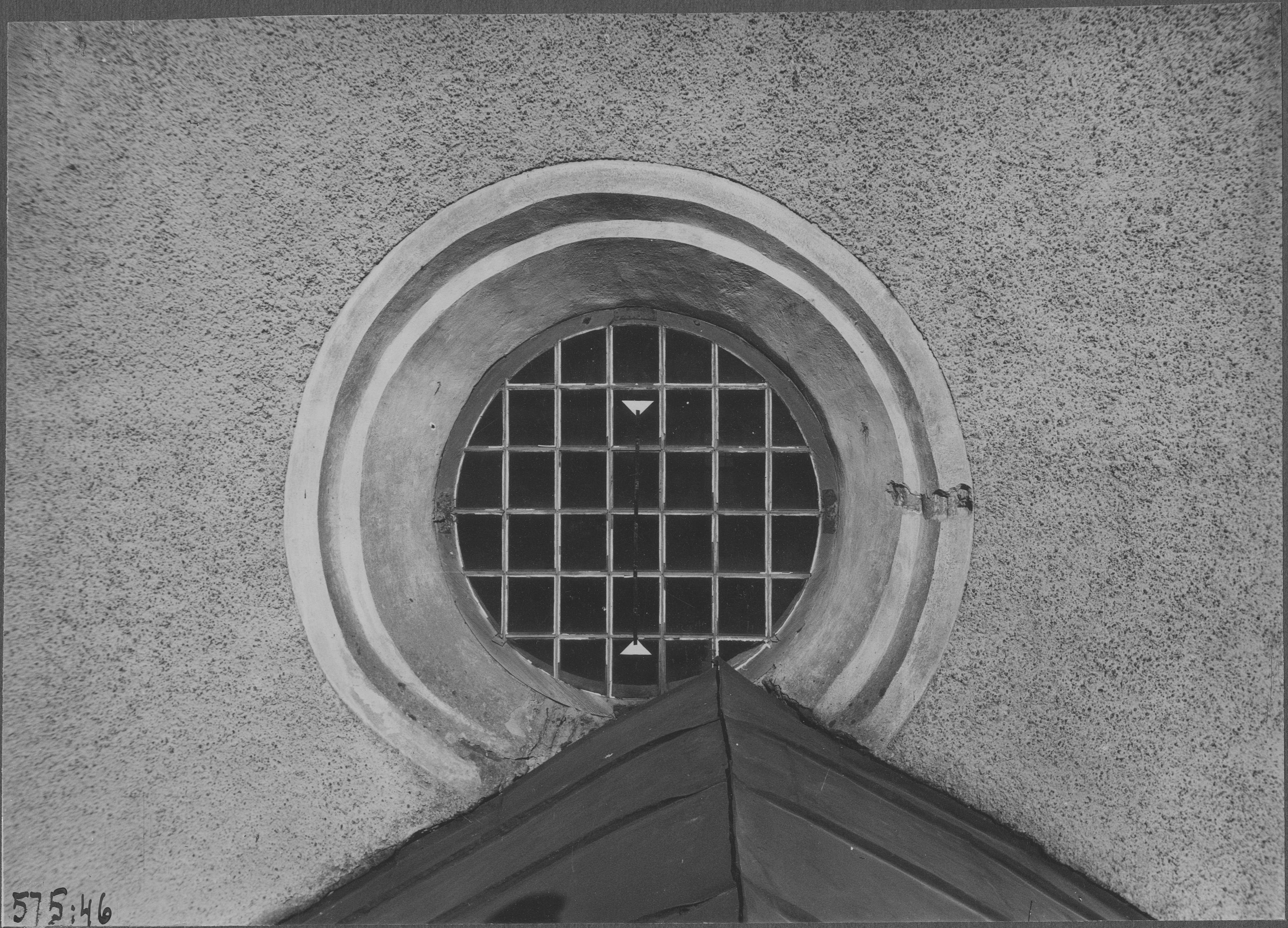 Beskrivning: Rundfönster på södra tvärskeppsgaveln.