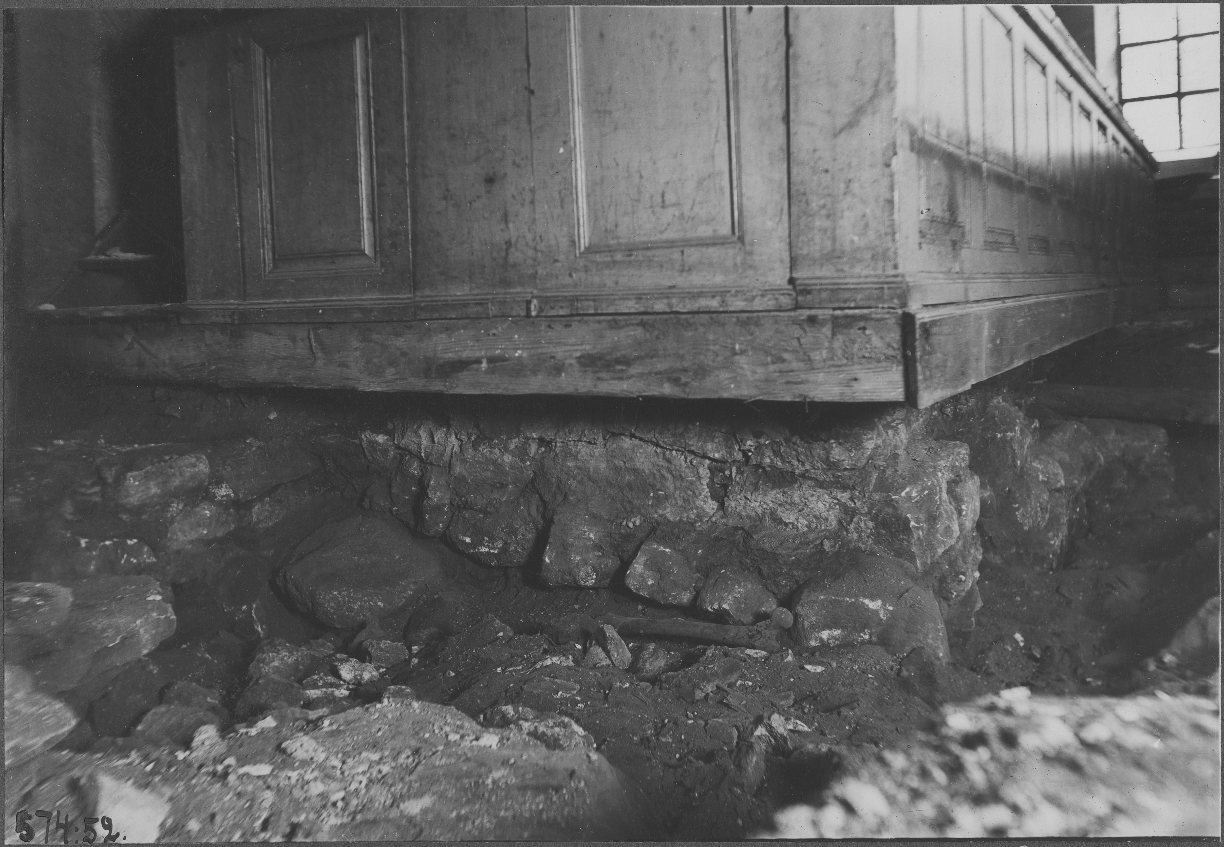 Beskrivning: Gamla korabsidens grundmur från väster.