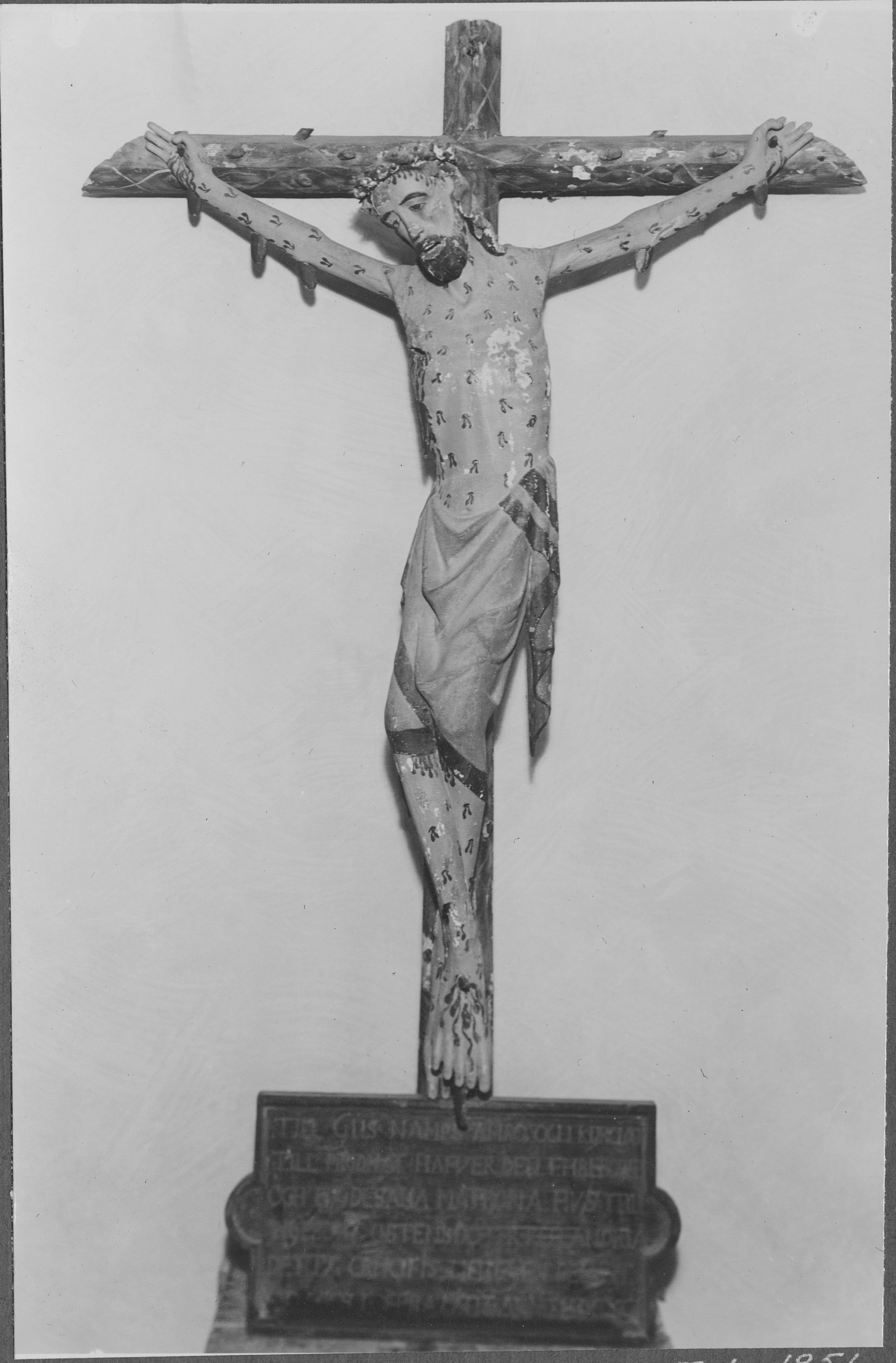 Beskrivning: Triumfkrucifix av trä. Omkring 1350. Före konservering.