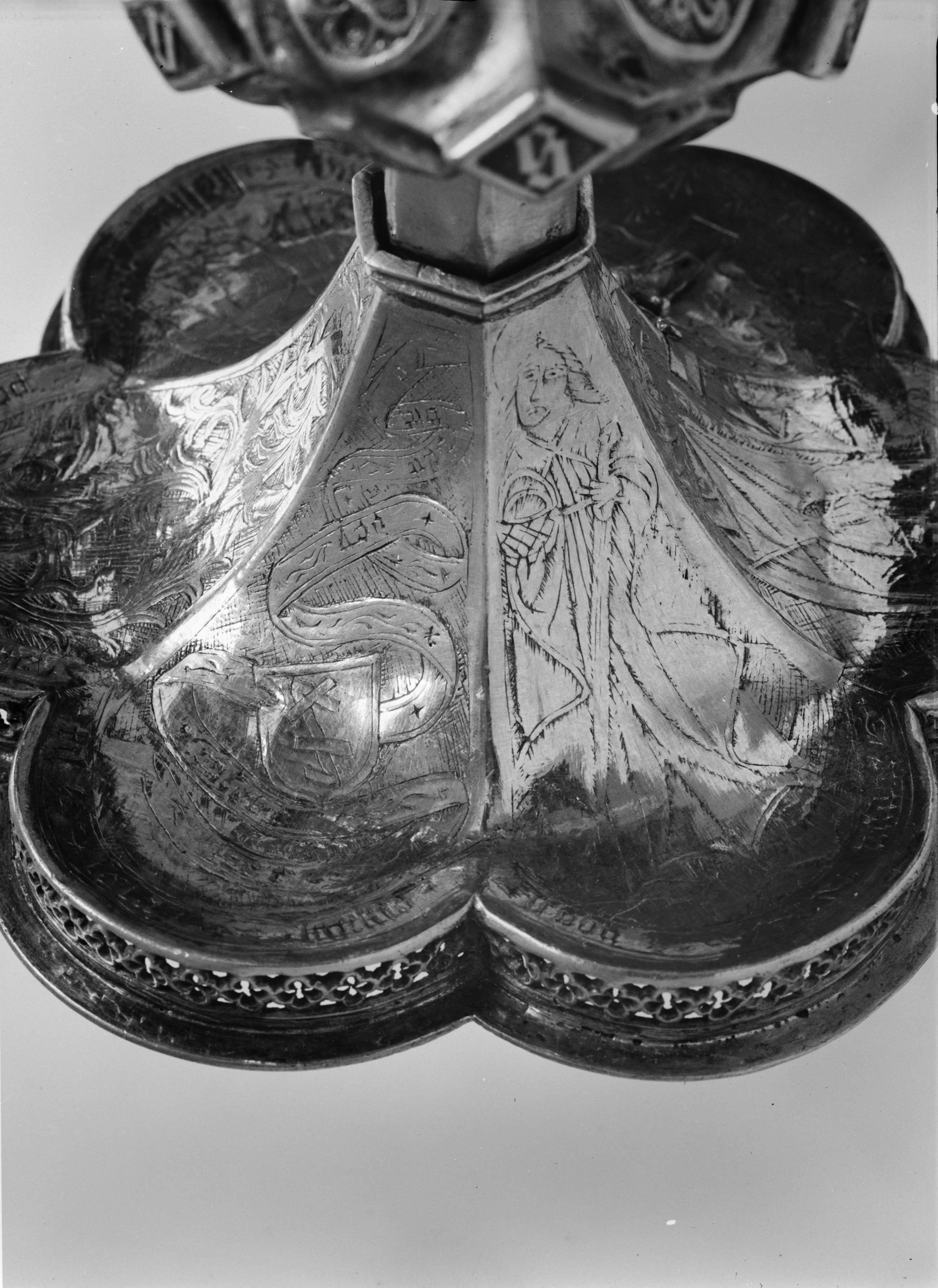 Beskrivning: Kalk av silver, förgylld. Detalj av fot.