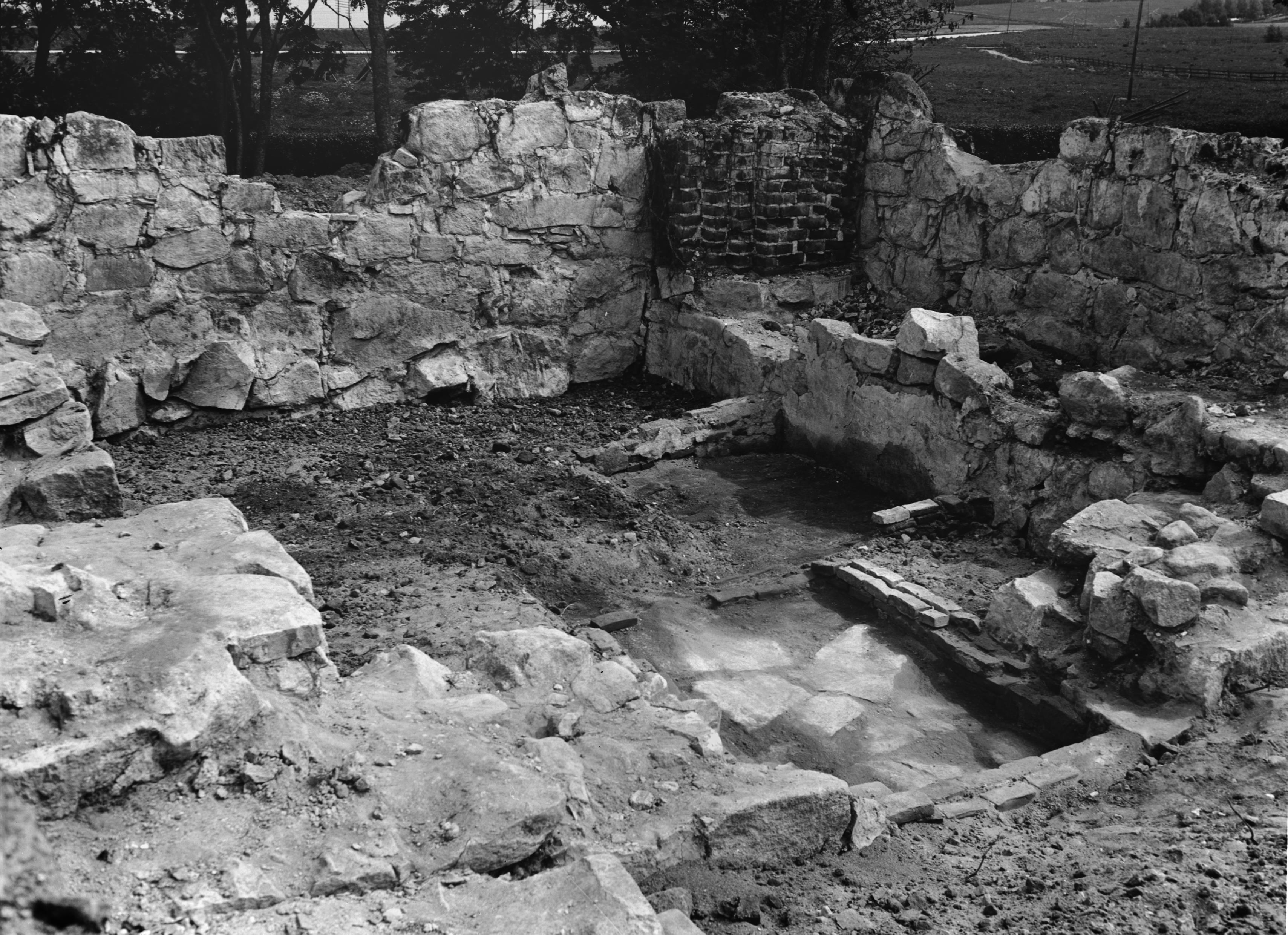 Beskrivning: Kyrkoruinen, äldre triumfbågsmuren och södra korväggen.