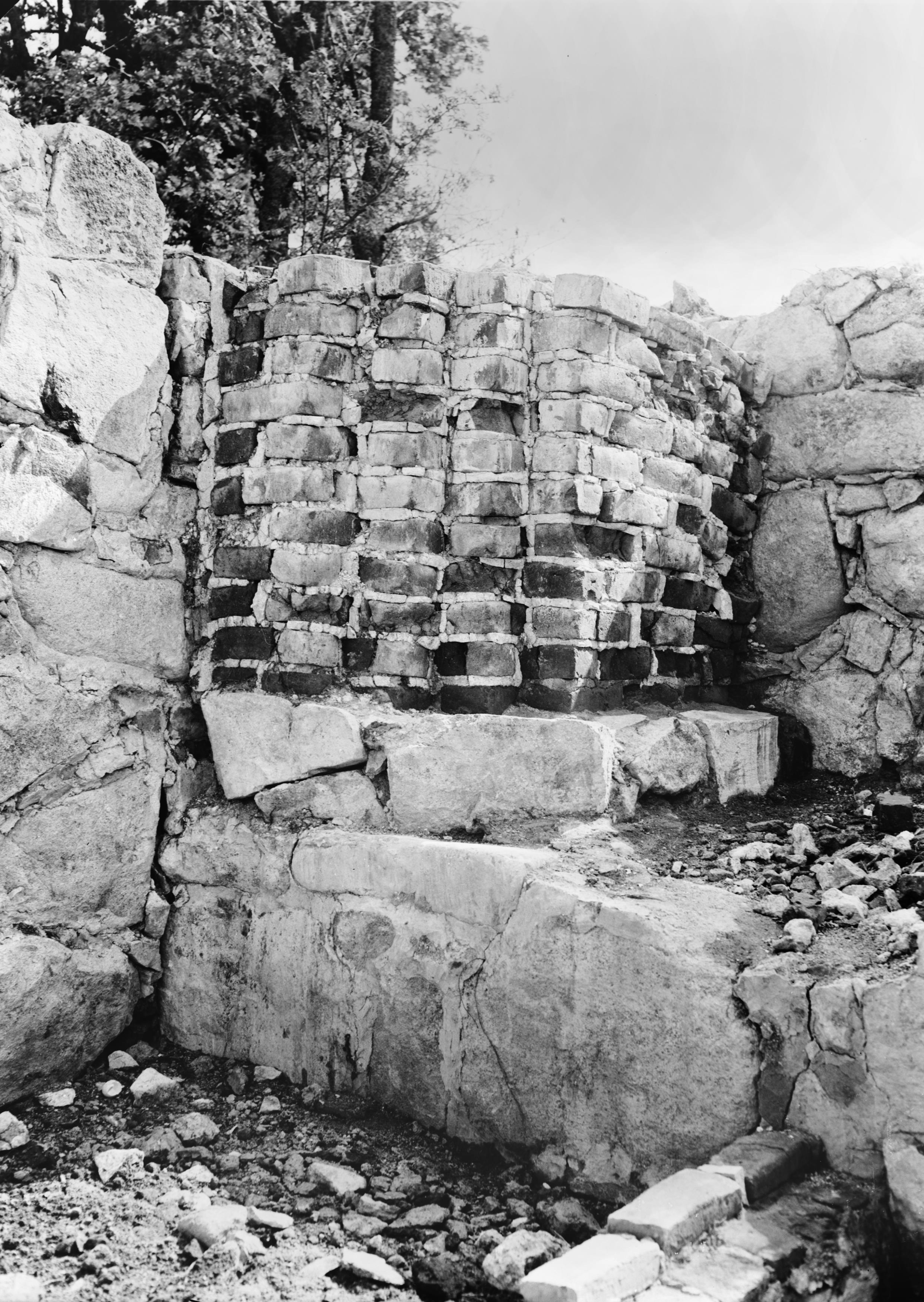 Beskrivning: Kyrkoruinen, valvpelare I. Under restaurering.