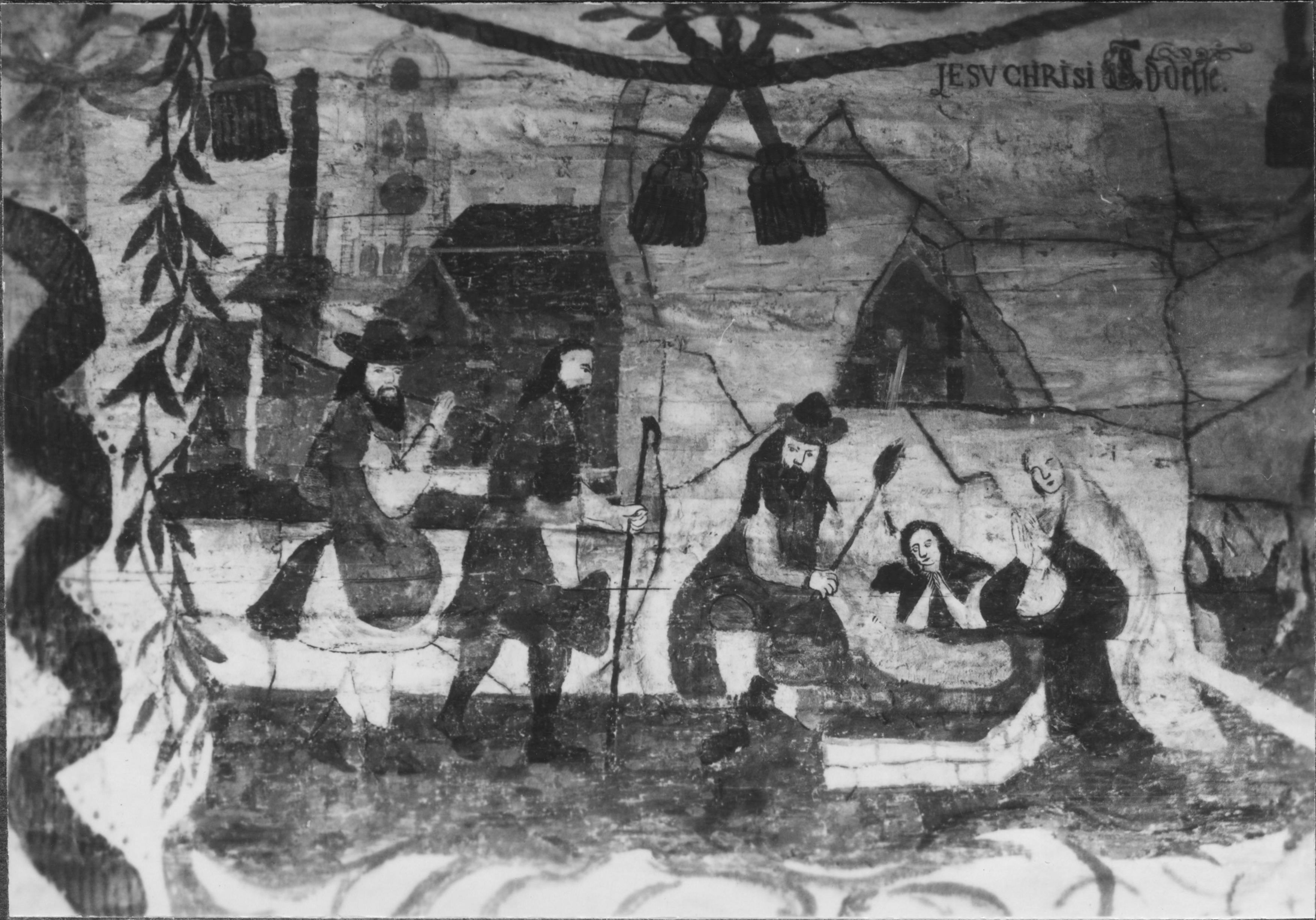 Beskrivning: Målningar på väggarna. Efter restaureringar.