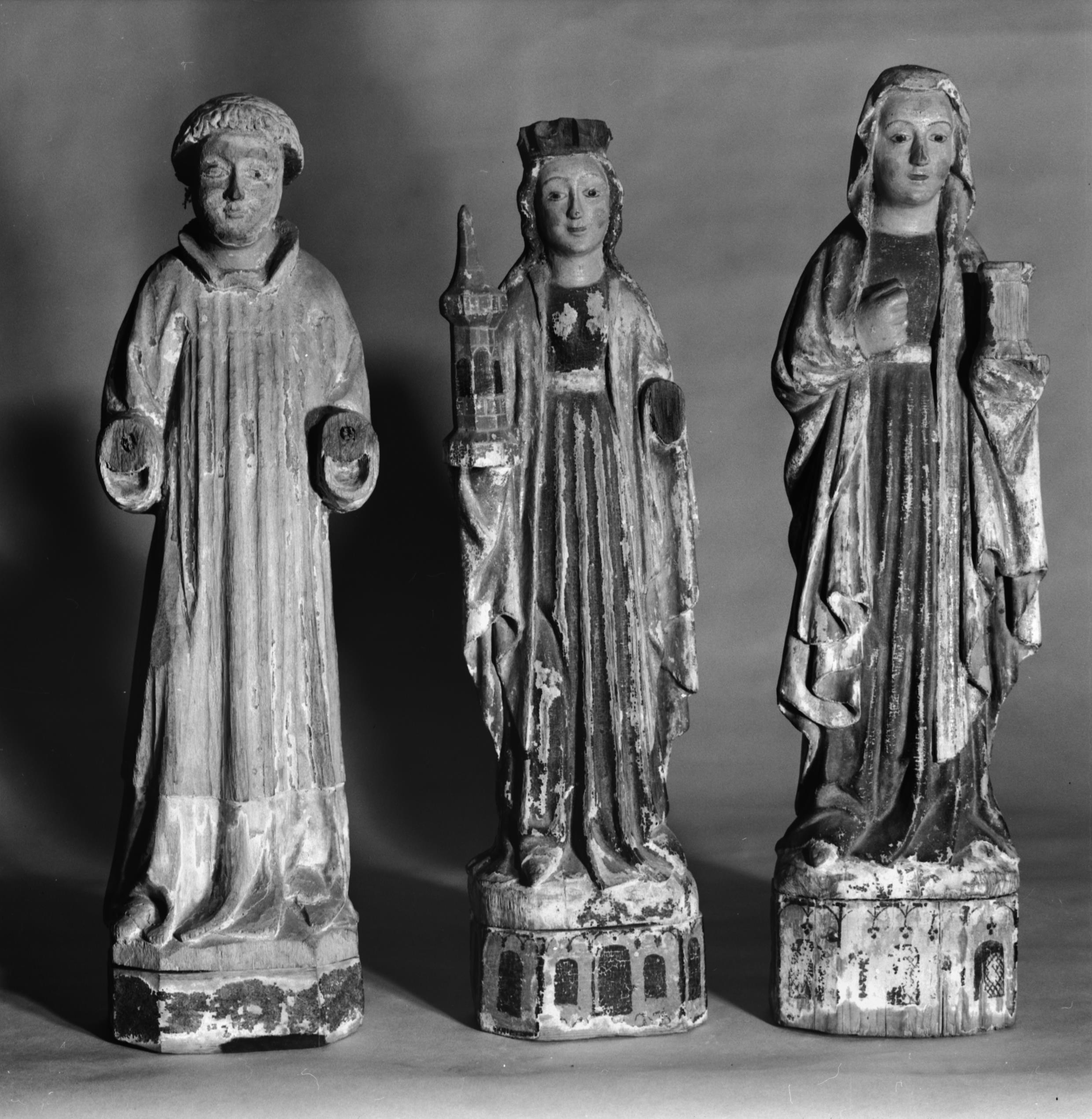 Beskrivning: Träskulptur från ett numera saknat altarskåp. Omkring 1500.