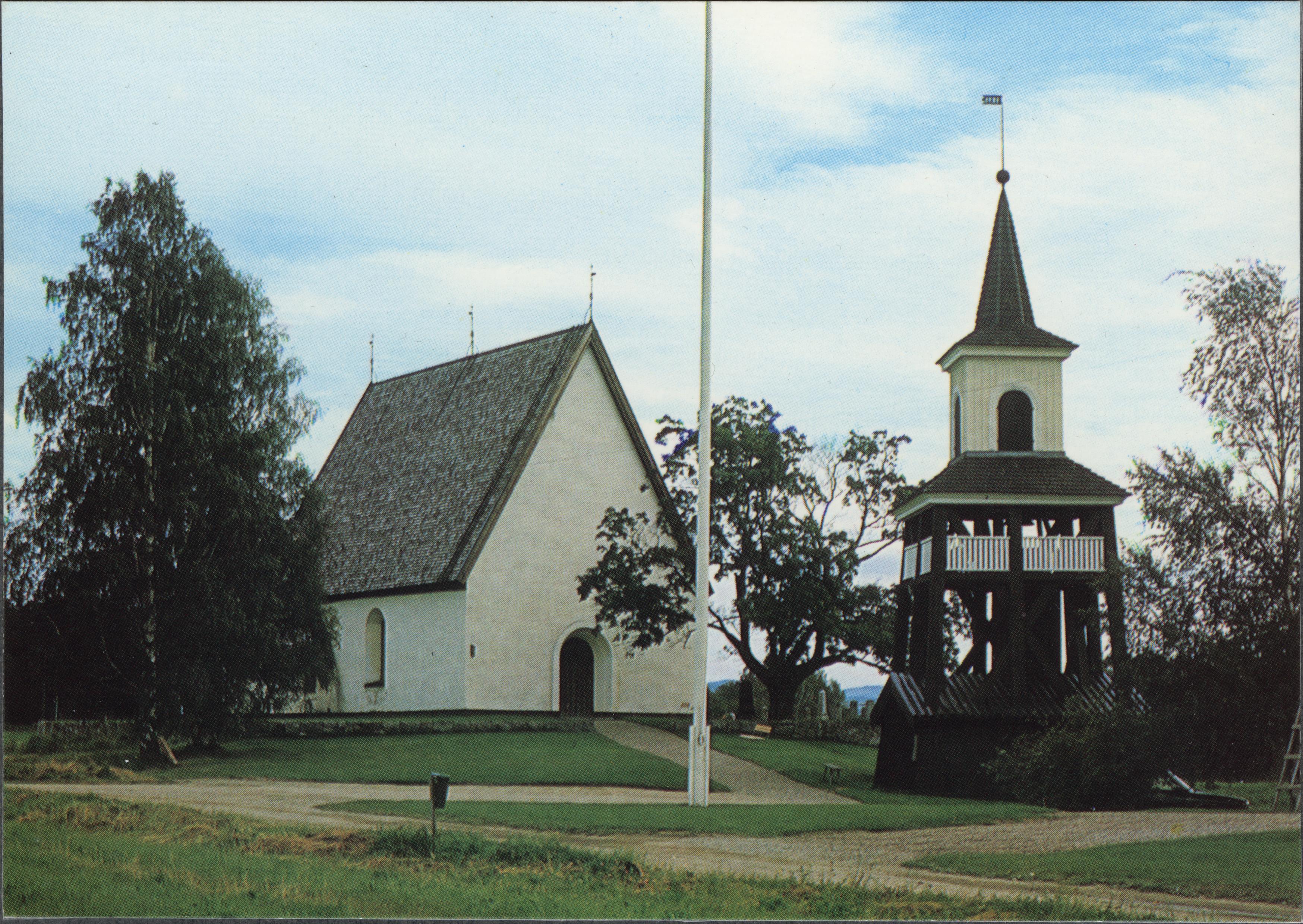 Beskrivning: Kyrkan och klockstapeln.