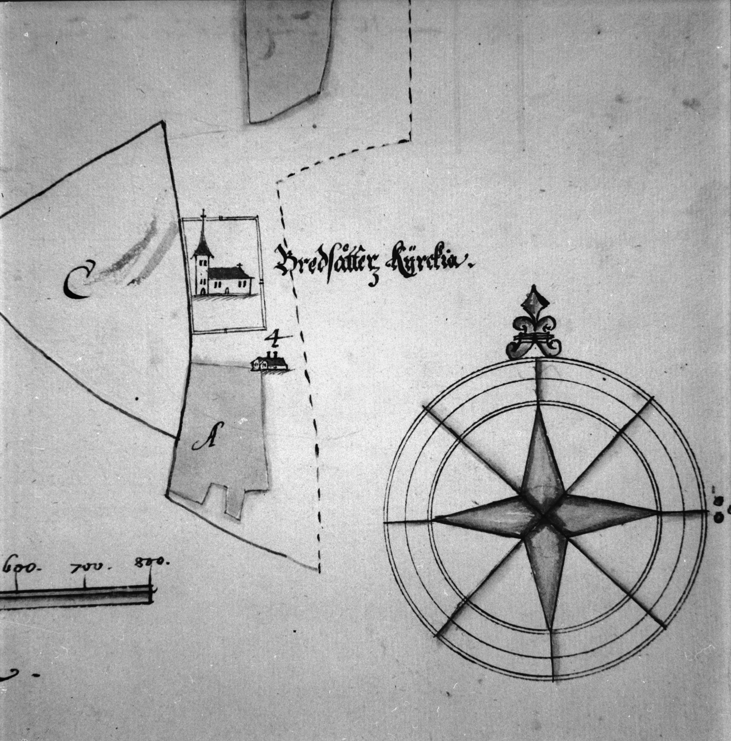 Beskrivning: Teckning av kyrkan, detalj av karta. Ur Geometrisk Book av Ölands Norre mooth., 1683.