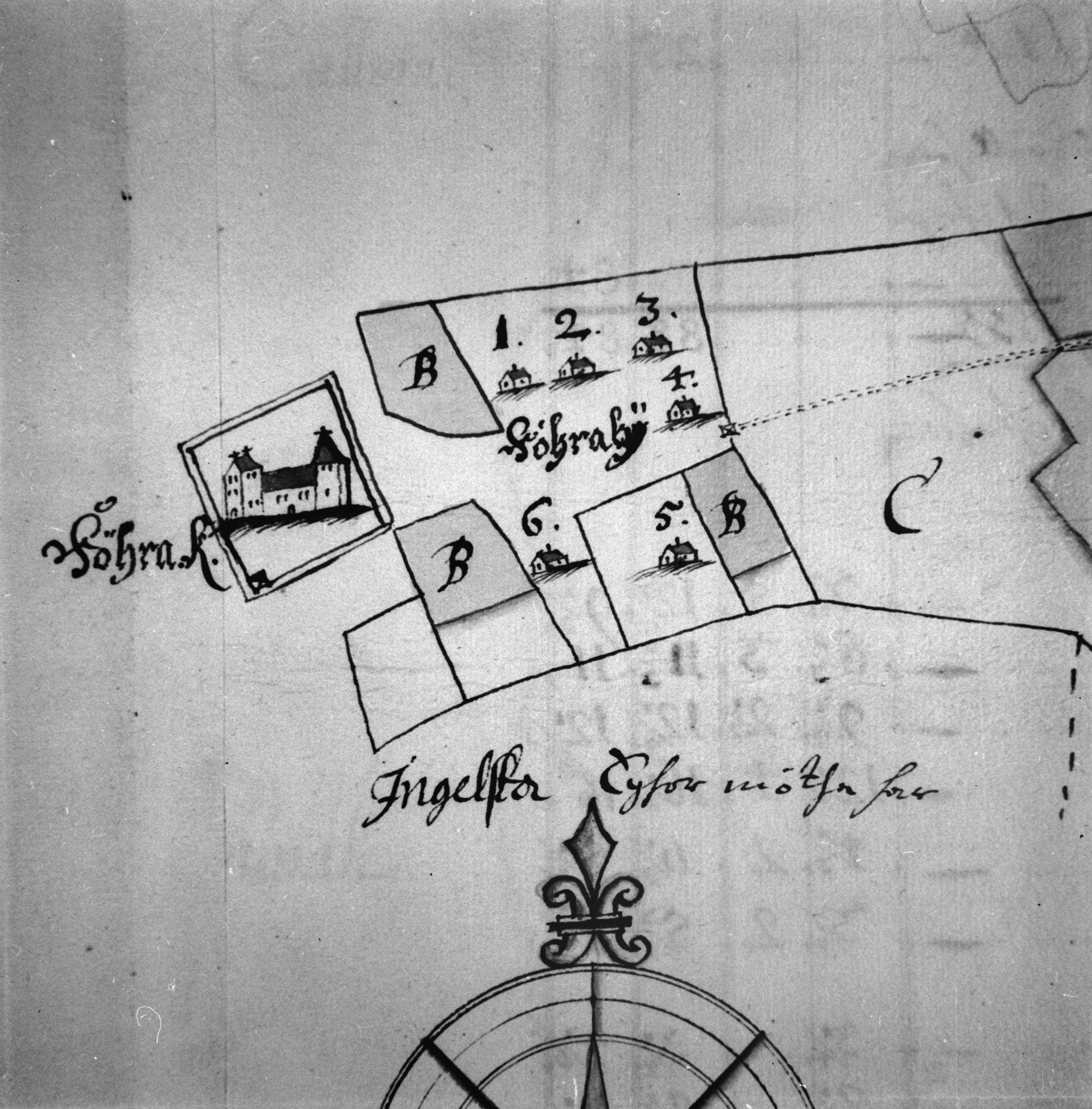 Beskrivning: Teckning av kyrkan, detalj av karta, ur Geometrisk Book av Ölands Norre mooth 1683. Länstyrelsens arkiv.
