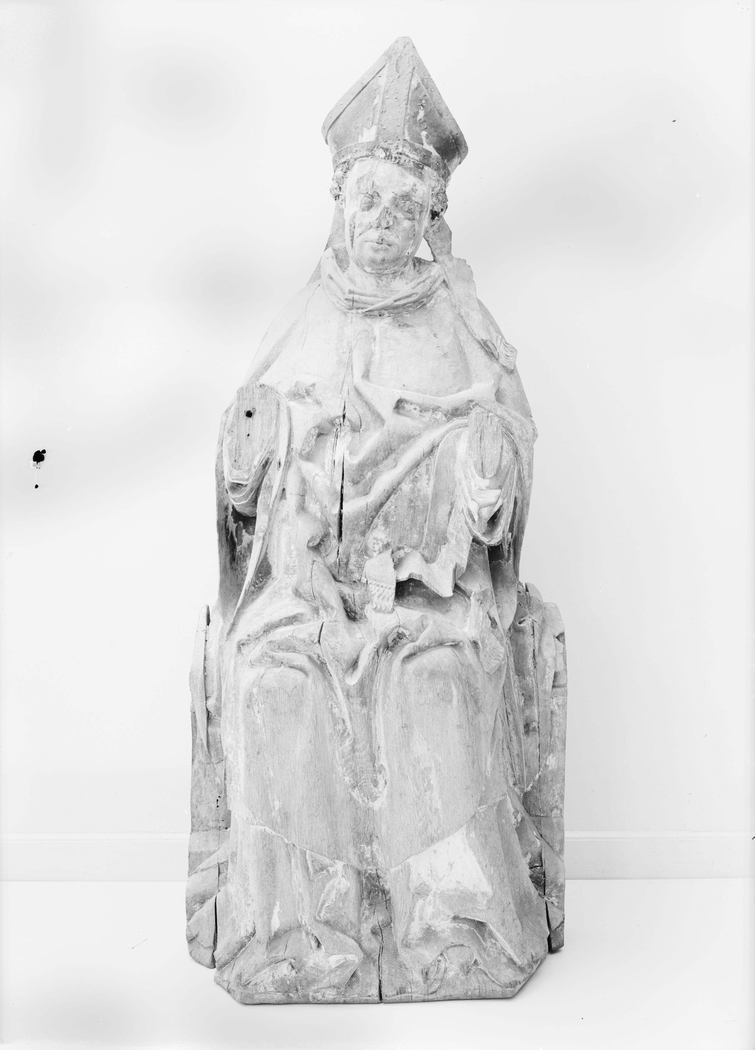 Beskrivning: Skulptur av trä föreställande en biskop. SHM inv 16153.