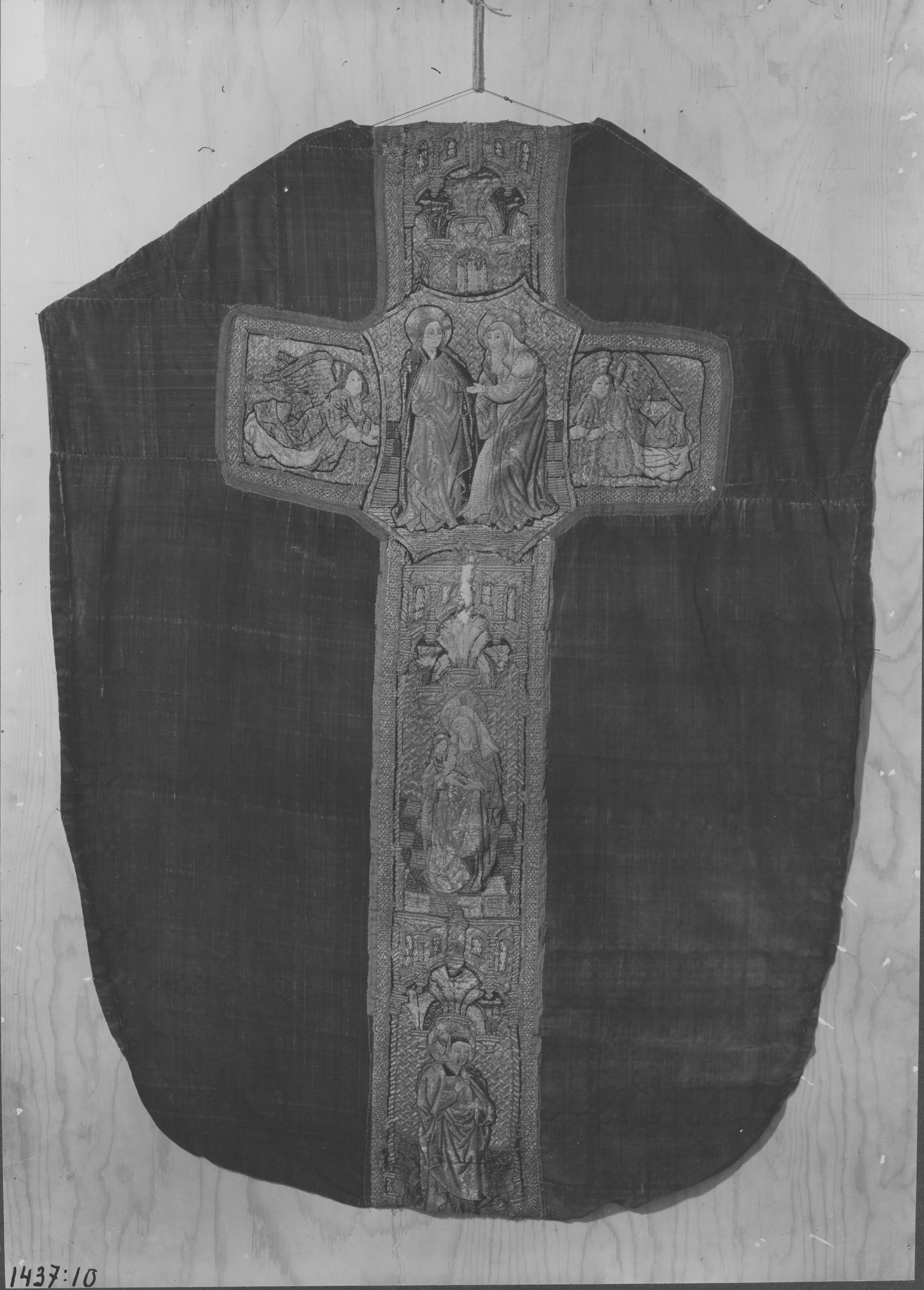 Beskrivning: Mässhake med broderat kors, före konservering. Pietas nr 1462/1933.