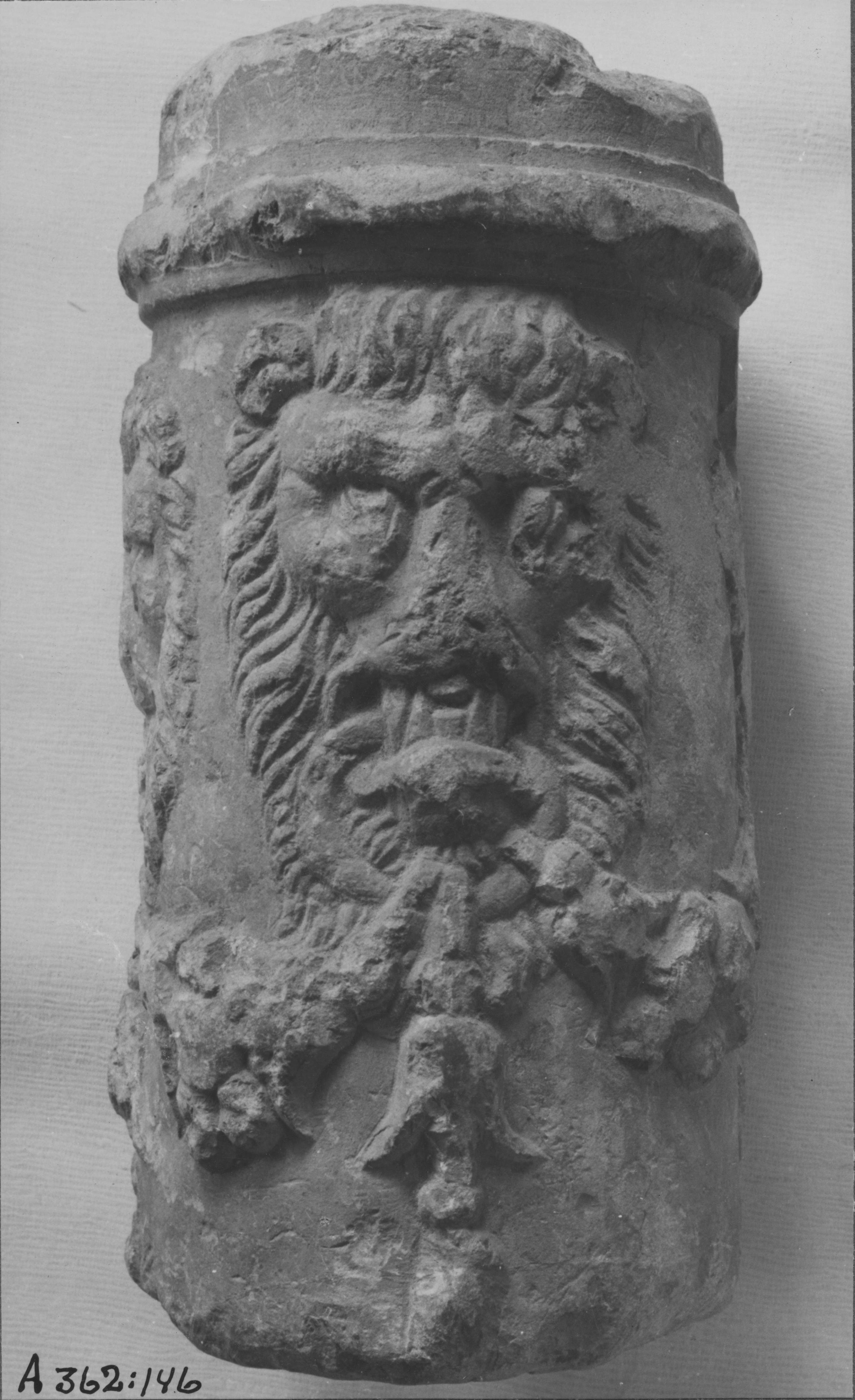 Beskrivning: Del av kolonnskaft, "strumpa", av kalksten från 1500-talets senare del.