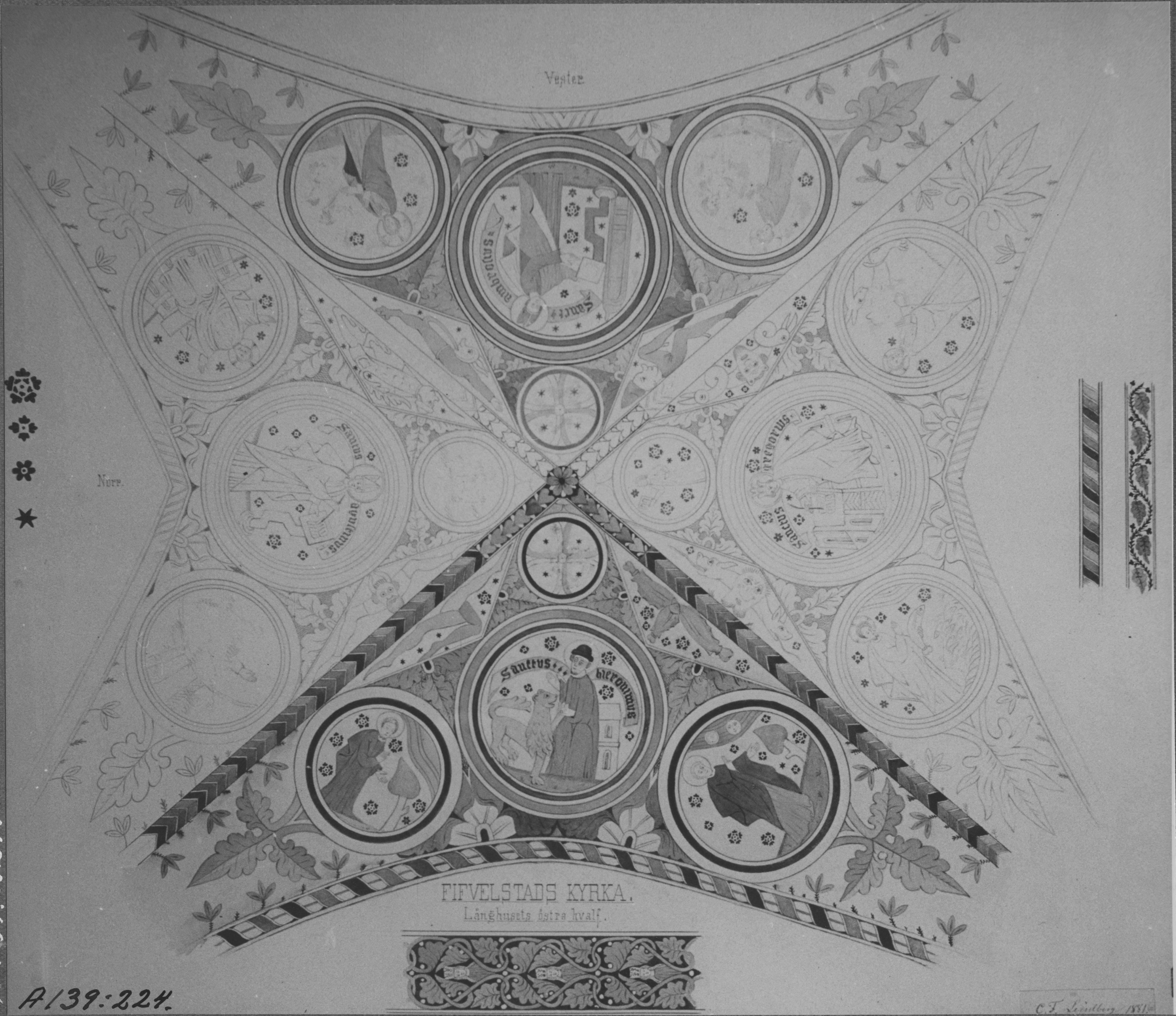 Beskrivning: Målade skisser av C.F. Lindberg 1881.
