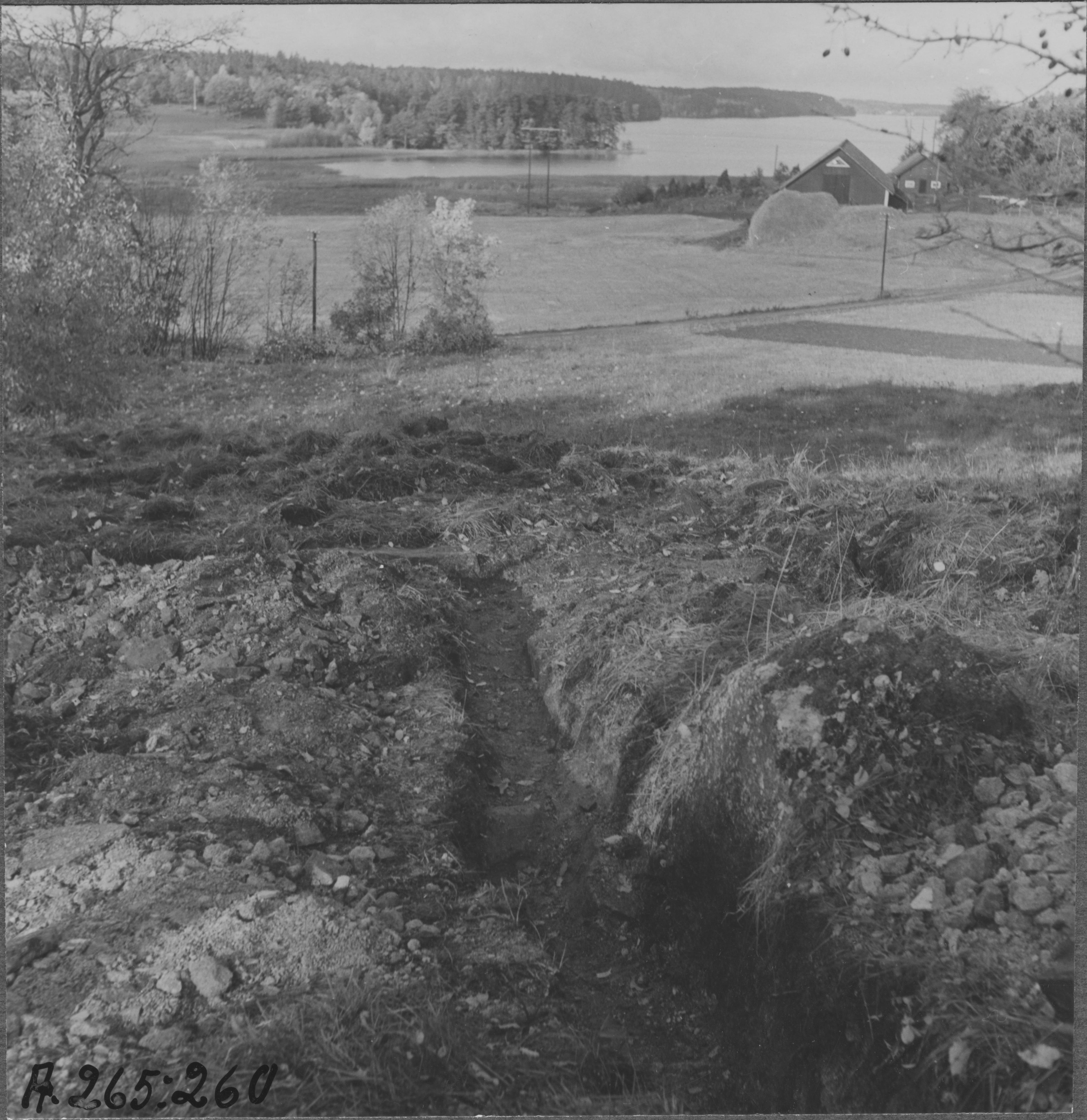 Beskrivning: Utgrävning 1953-1954 av murlämningar efter gamla kyrkan.