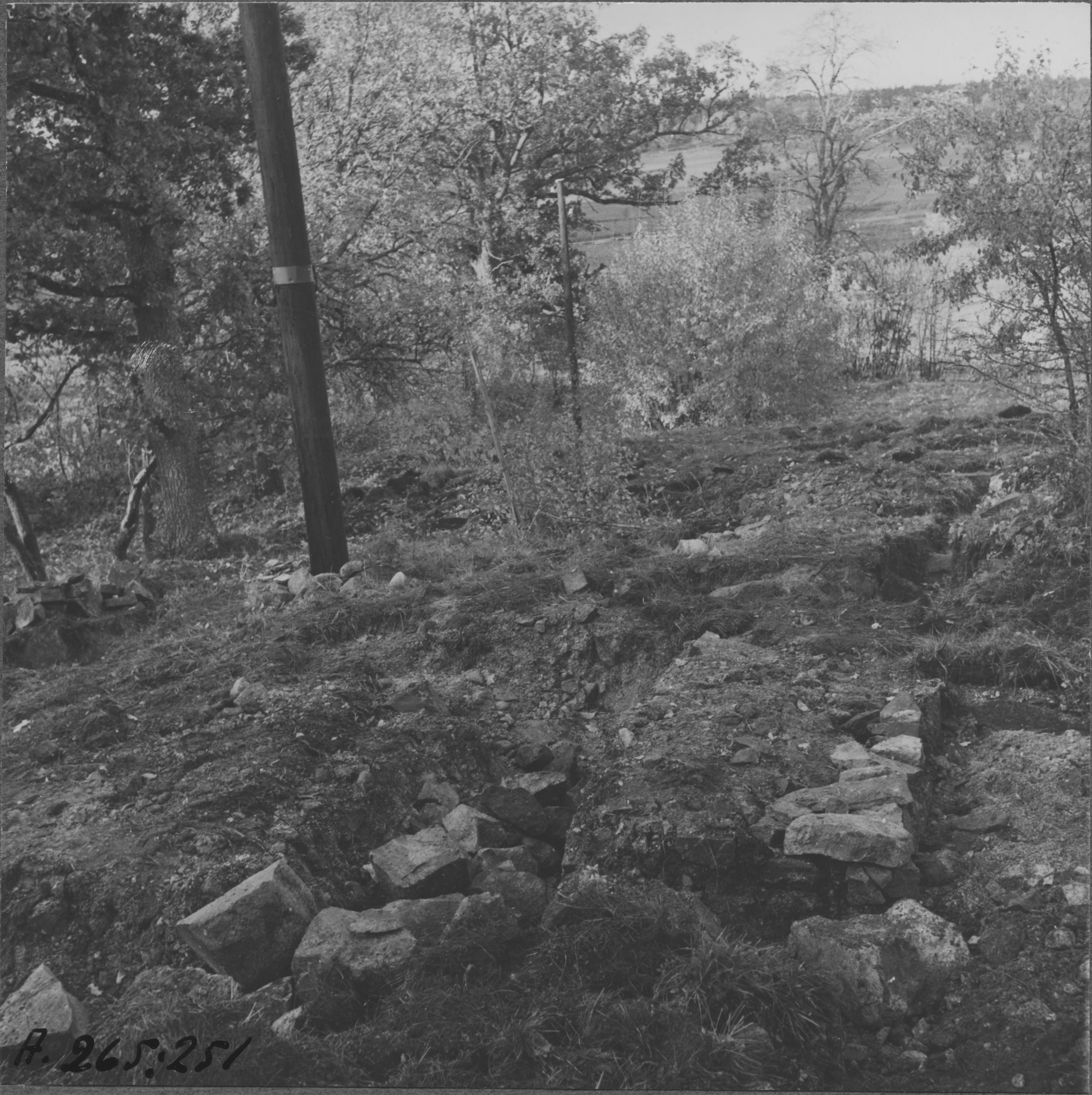 Beskrivning: Utgrävning 1953-1954 av murlämningar efter gamla kyrkan.