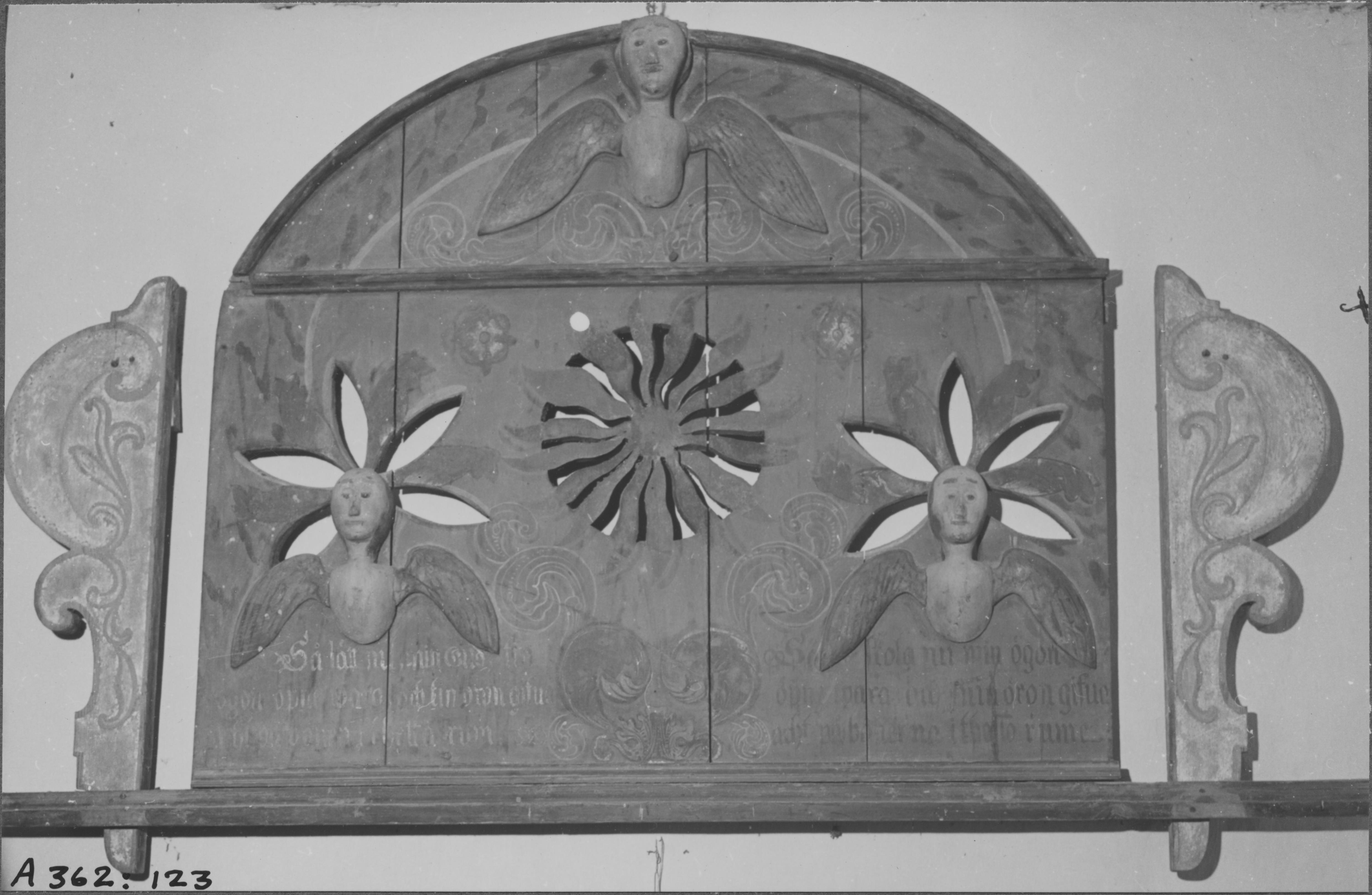 Beskrivning: Krönparti till altartavla från 1744. Sveriges Kyrkor.