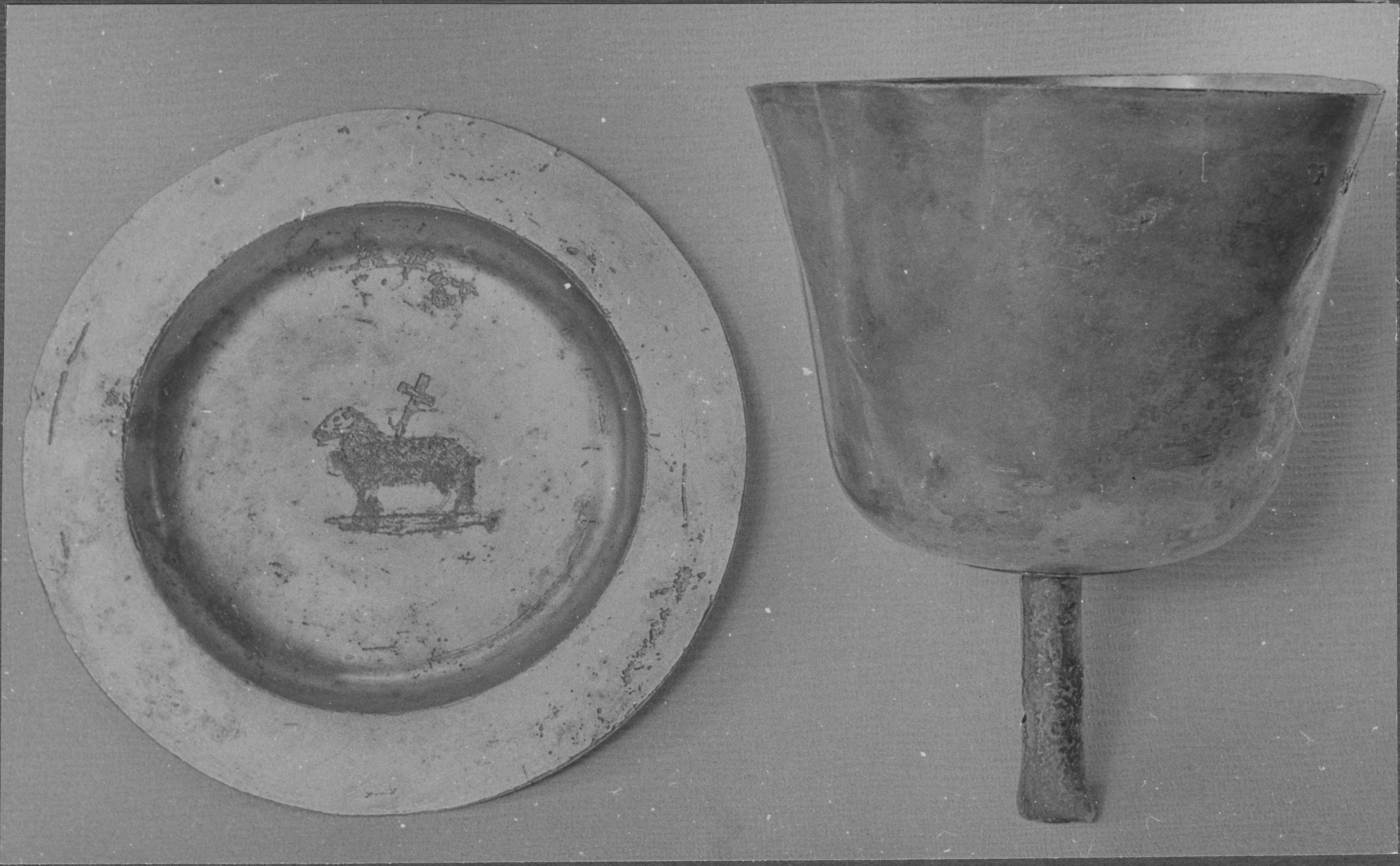 Beskrivning: Altarkärl stulna 1825, återfunna 1933 vid rensning av en brunn i Kalmar slott. Sveriges Kyrkor.