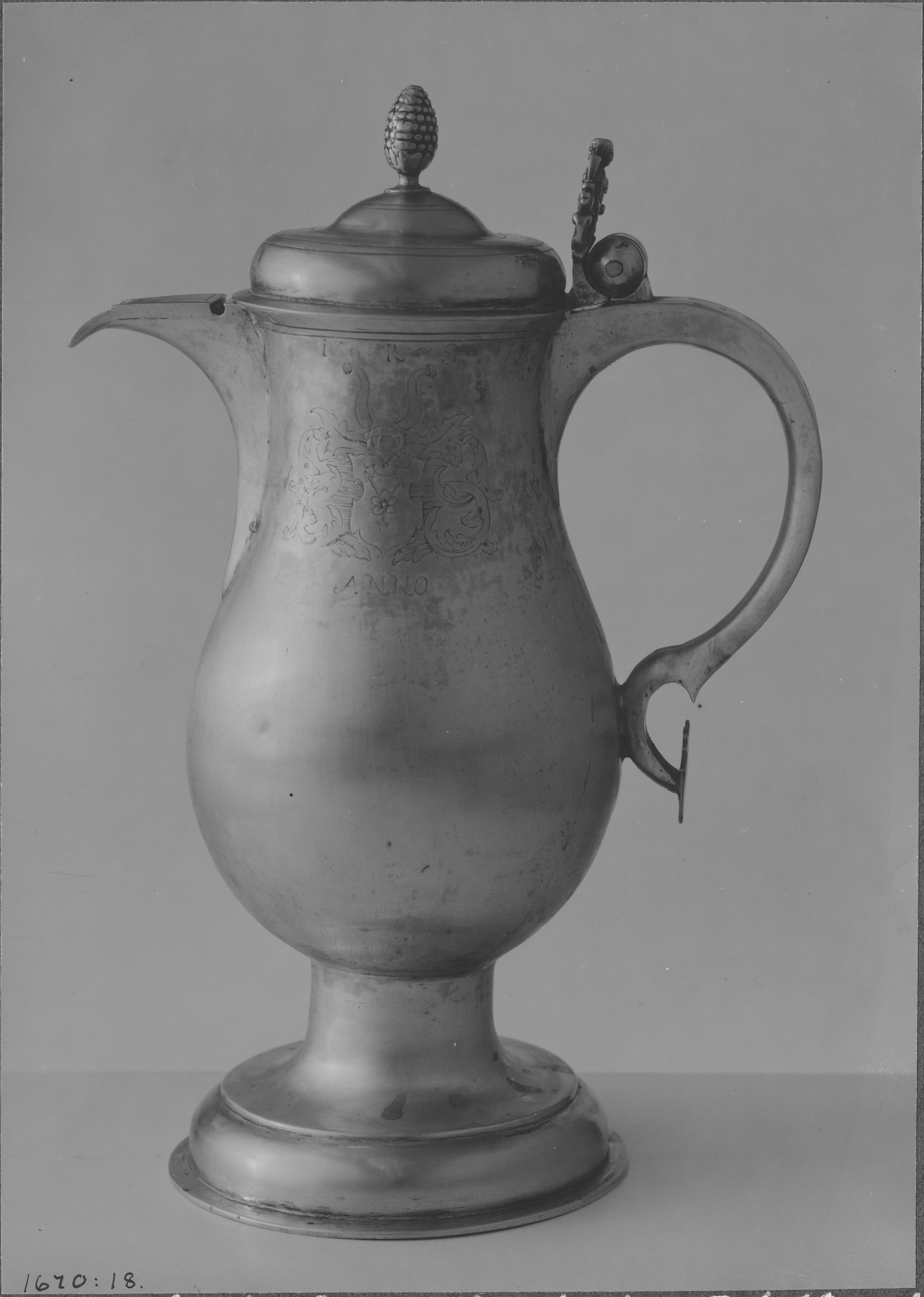 Beskrivning: Vinkanna av silver. Ornerad med vapen, ett på var sida. Anno 1644. Gustaf Adolfutställingen 1932 nr 1402.