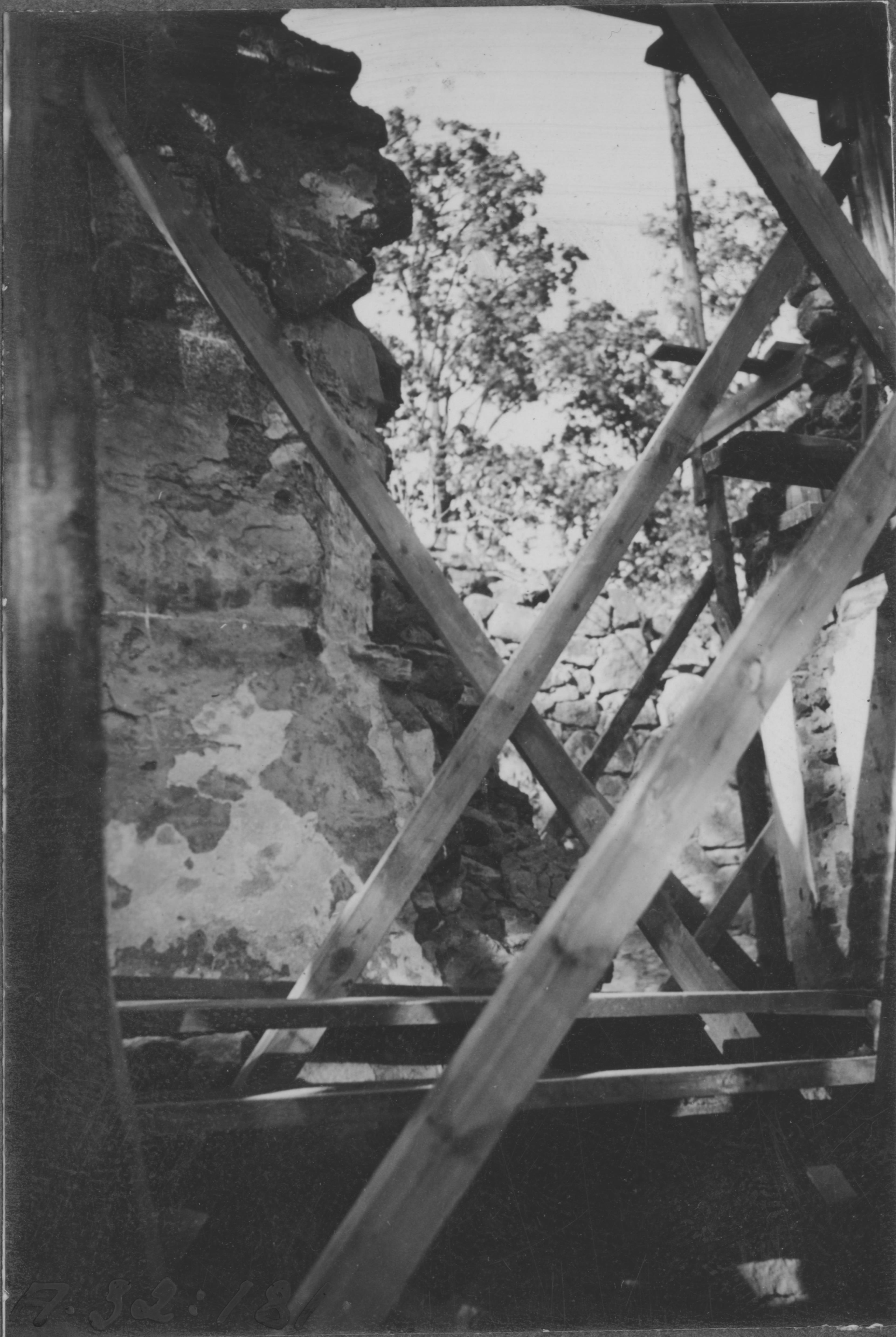 Beskrivning: Urprungligt fönster i gamla kyrkan. Från söder.