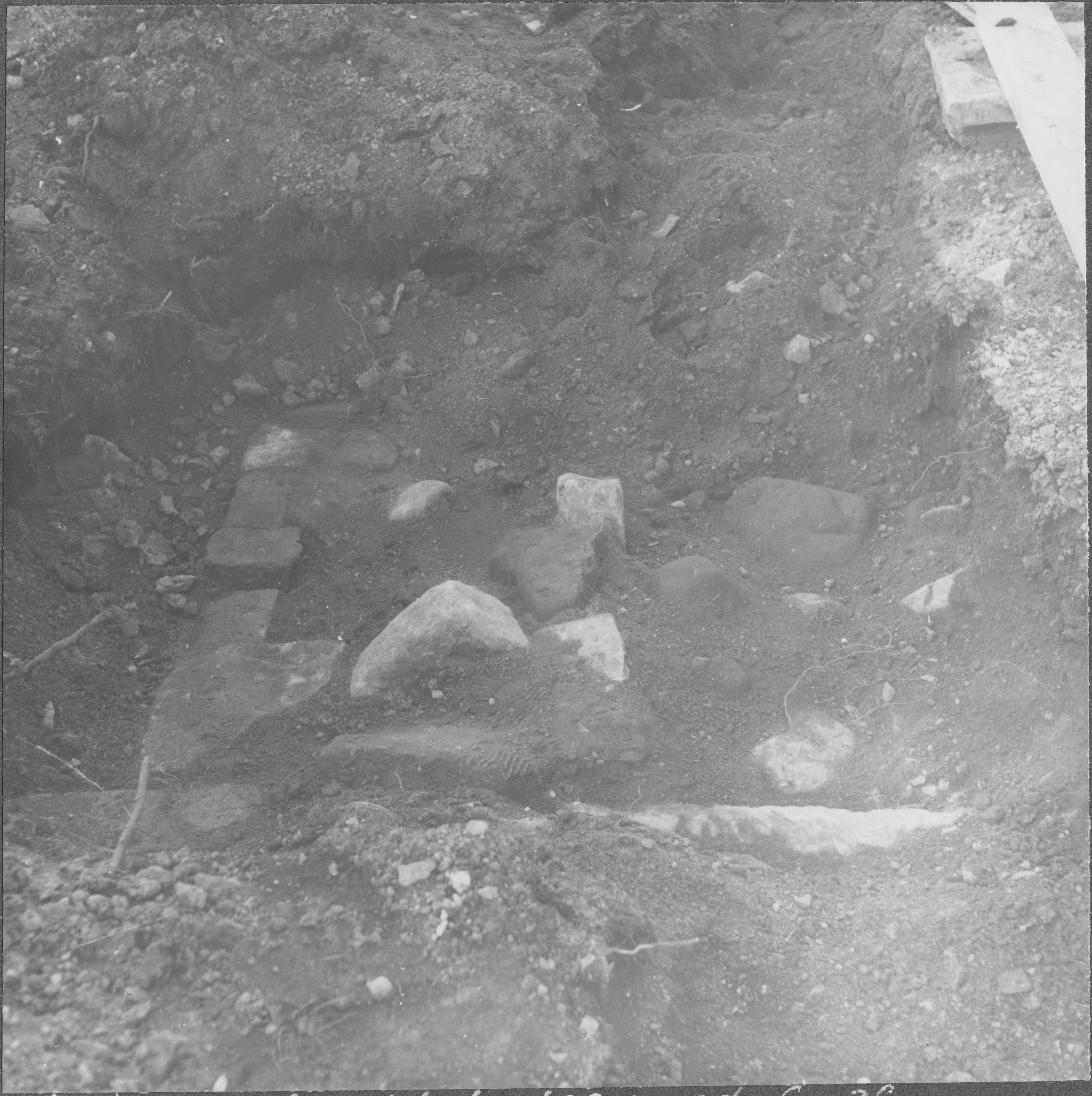 Beskrivning: Sakristians eldstadsgrund. Från väster.