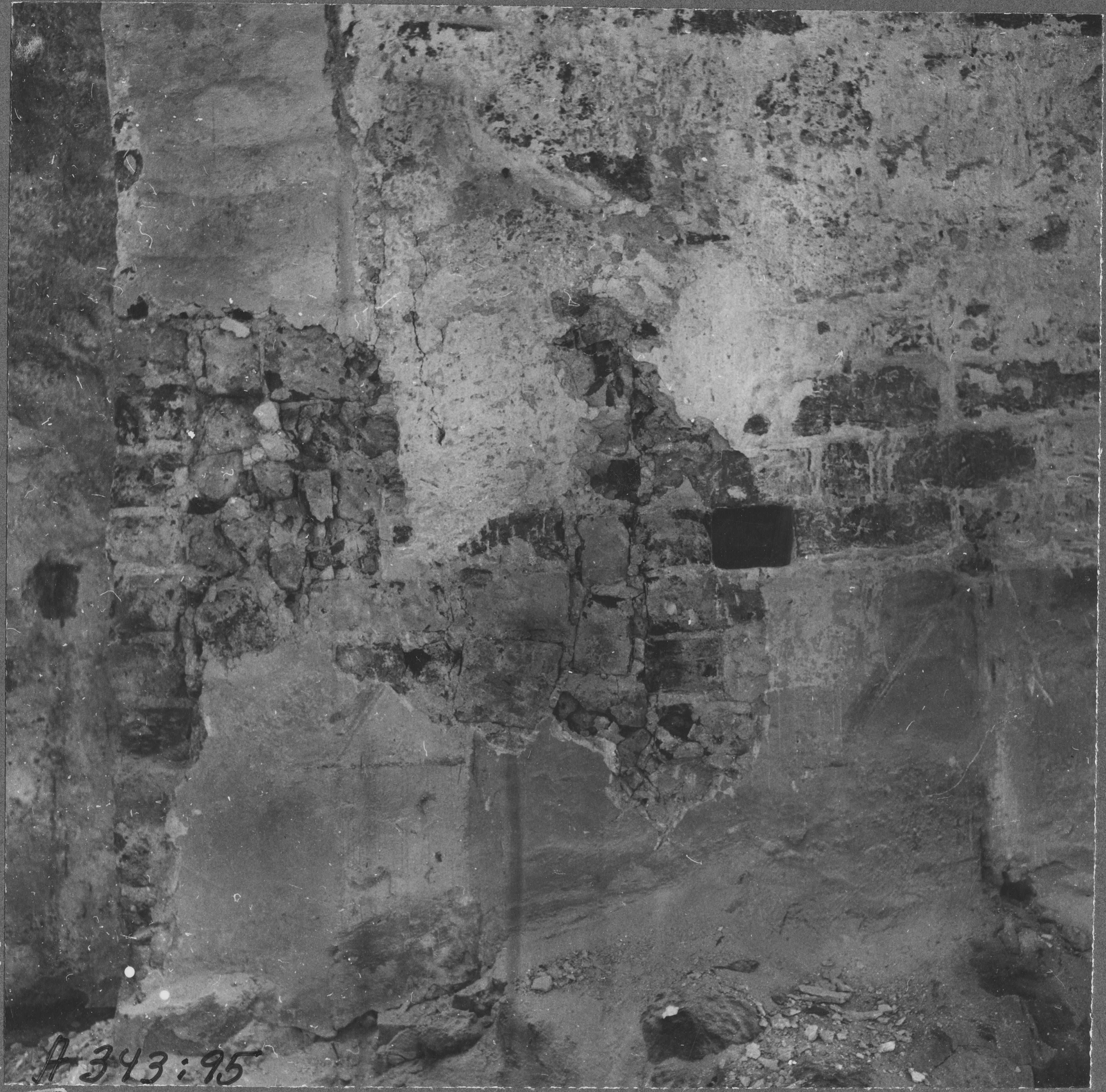 Beskrivning: Triumfbågens södra sida med spår efter den bortbrutna murklacken.