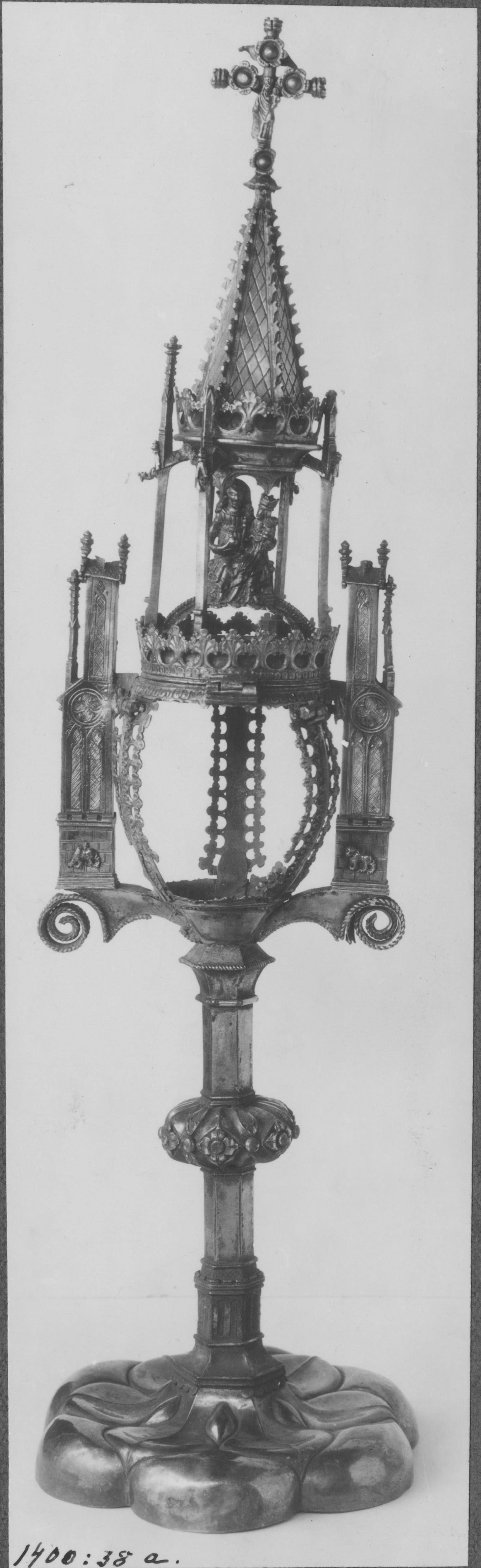 Beskrivning: Relikvarium av silver. "Linköpingsskatten".