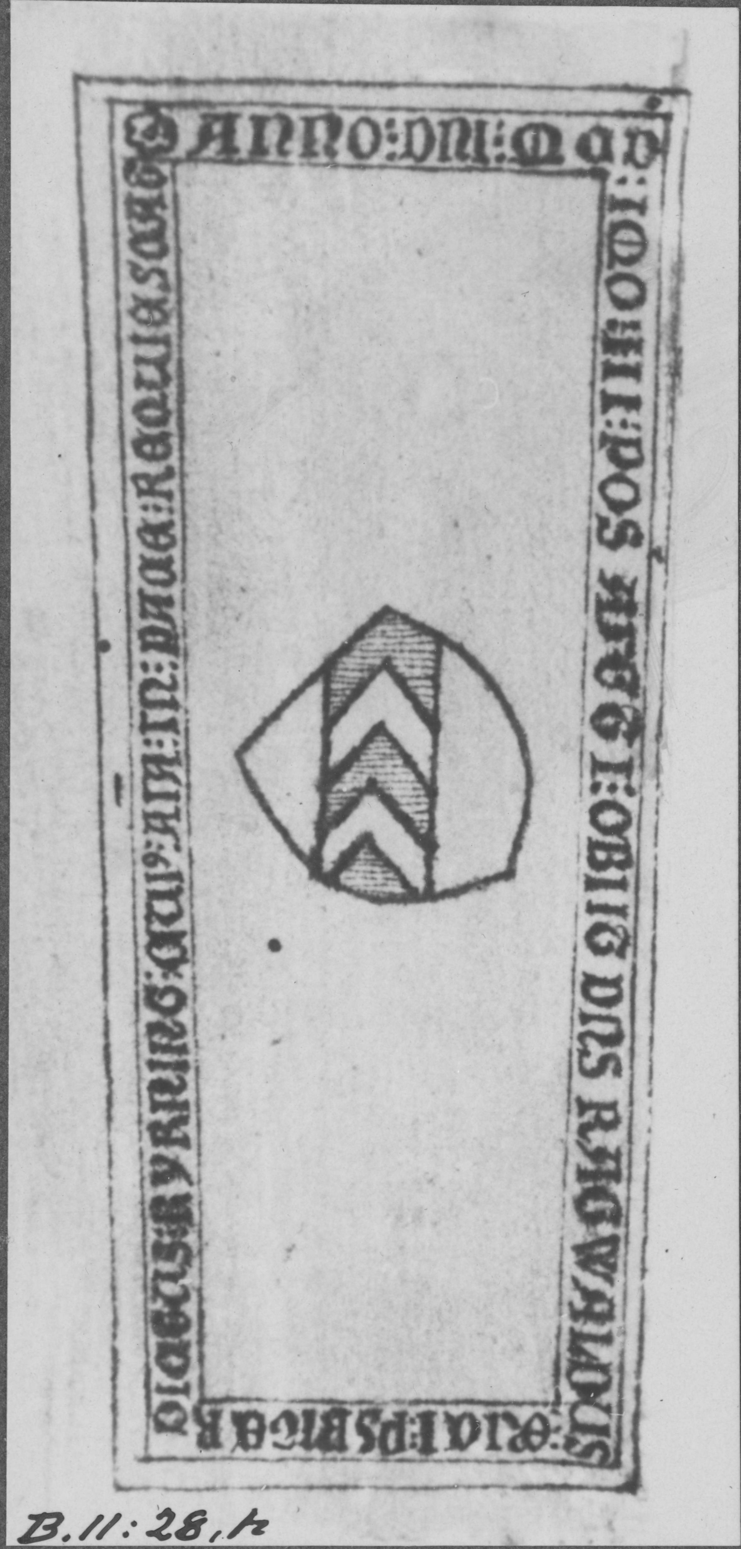 Beskrivning: Gravsten. Teckning. Foto ur Leiz och Brenner: Gravstenar 1669 och 1670. K.B. Handskrifter F.1.46.