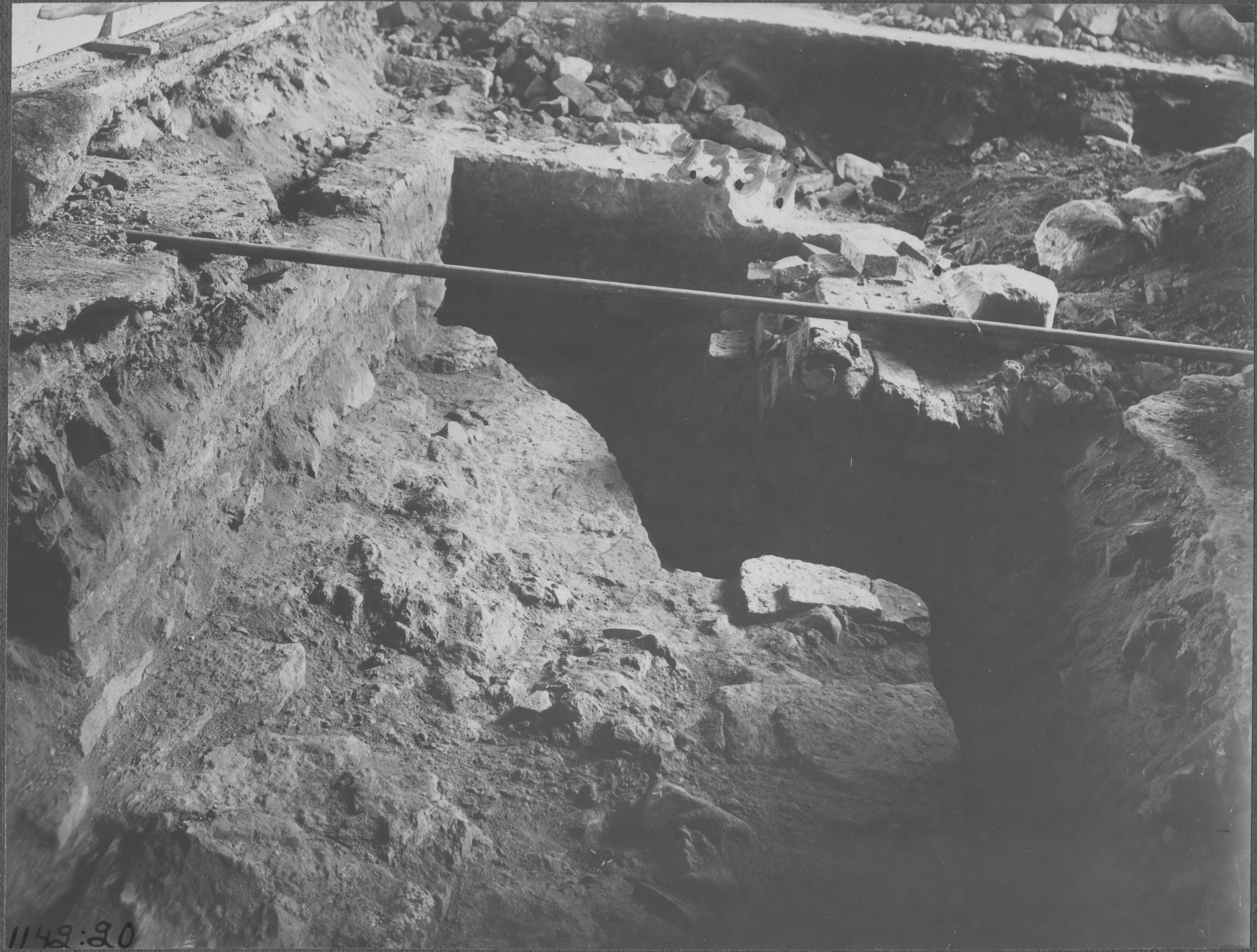 Beskrivning: 1100-talskyrkans kor, sydöstra hörnet.