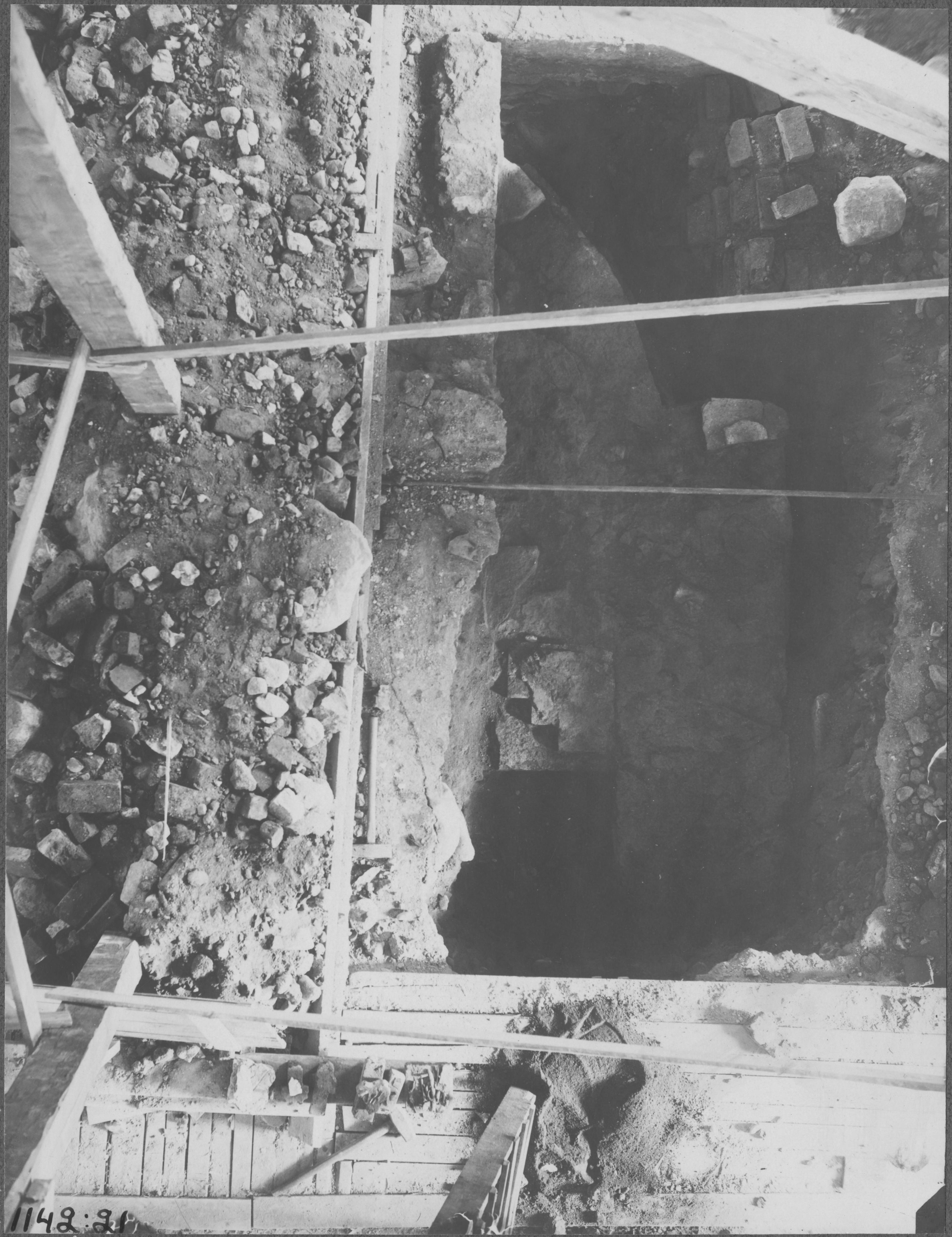 Beskrivning: 1100-talskyrkan kor, sydöstra hörnet.