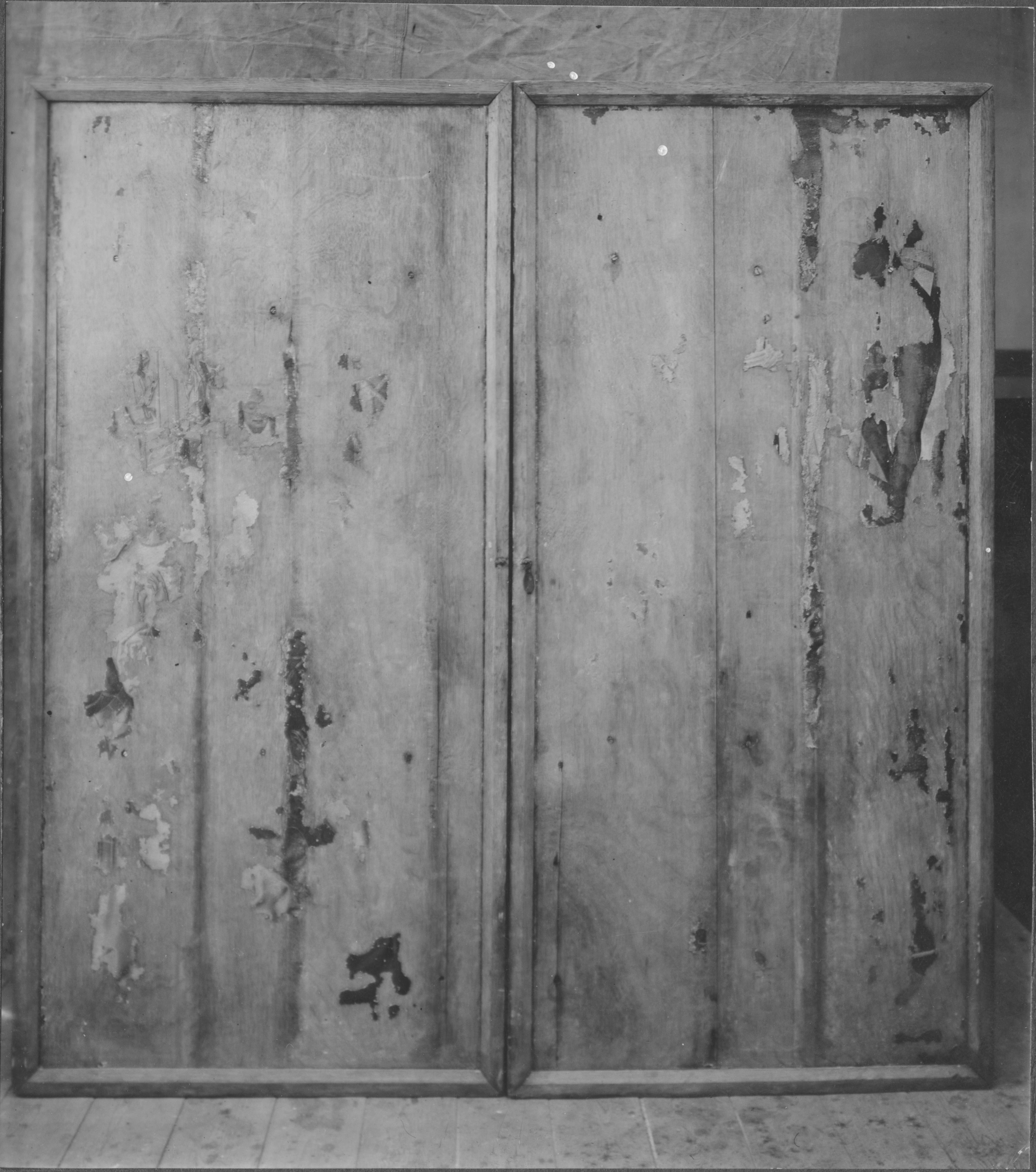 Beskrivning: Altarskåp. Dörrarna, efter konservering 1936. 1400-talets slut.