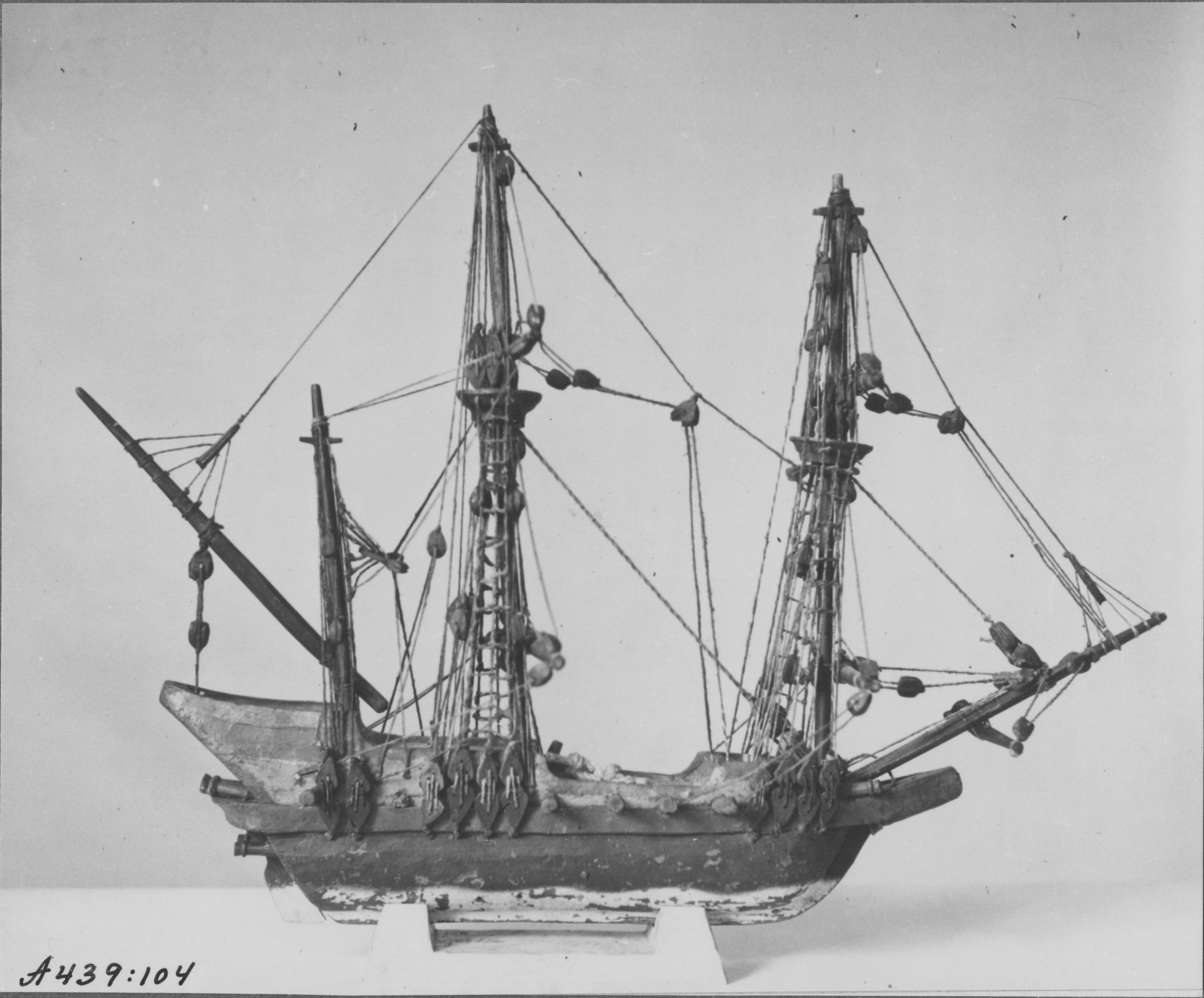 Beskrivning: Votivskepp av trä. Liten fregatt med ett lag kanoner. Efter komplettering i oktober 1947. Det uppsatta mesanspriets pikfall leder till toppen av stormärsstången.