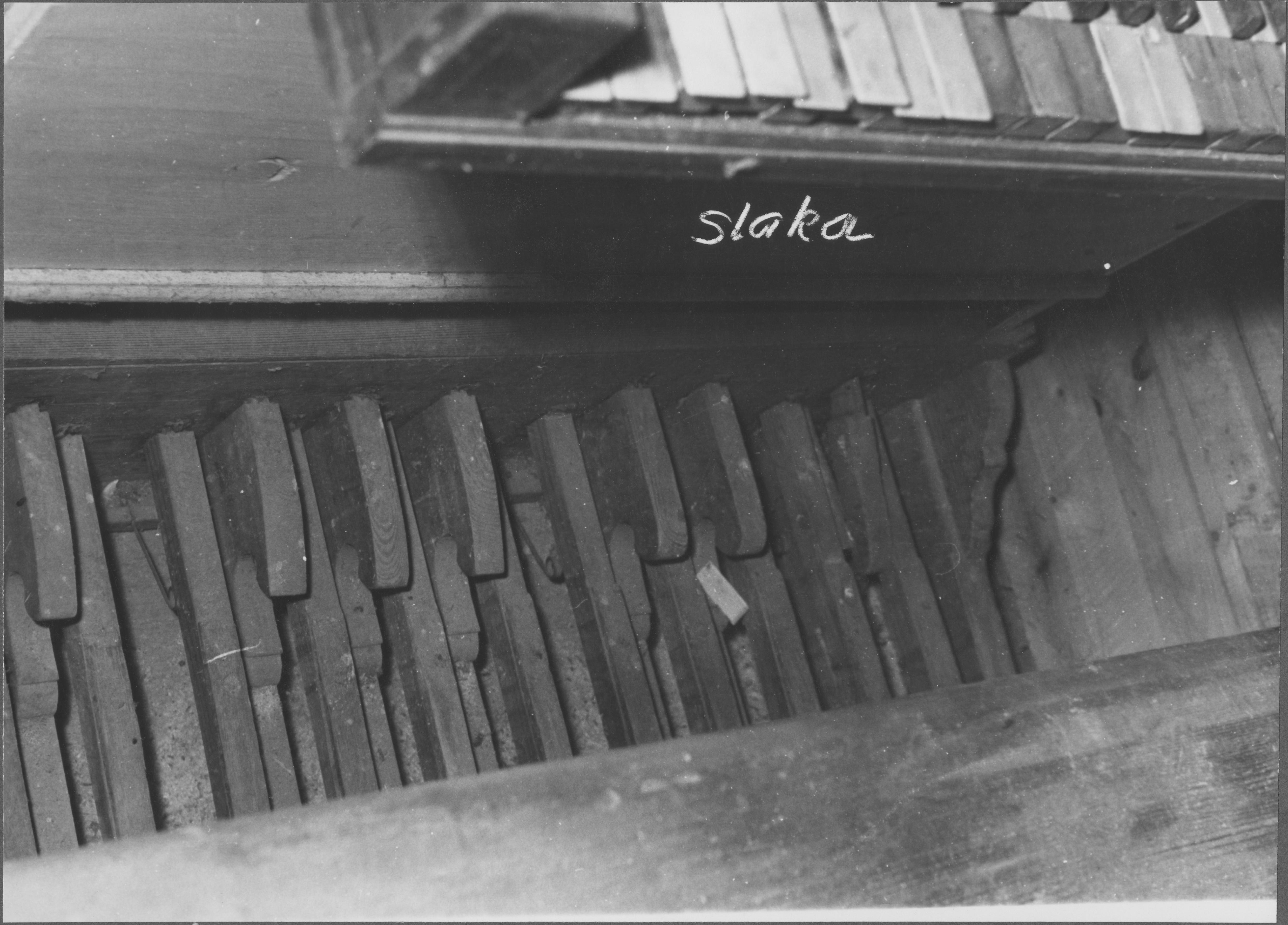 Beskrivning: Orgel byggd 1783 av Per Schiörlin. Orgelfasaden ritad av arkitekt Olof Tempelman vid Överintendentsämbetet och tillverkad av bildhuggaren Jonas Berggren. Detalj. Fotot från studier av Schörlins sätt att konstruera sina orgelhus genomförda av Bröderna Moberg, orgelbyggare.