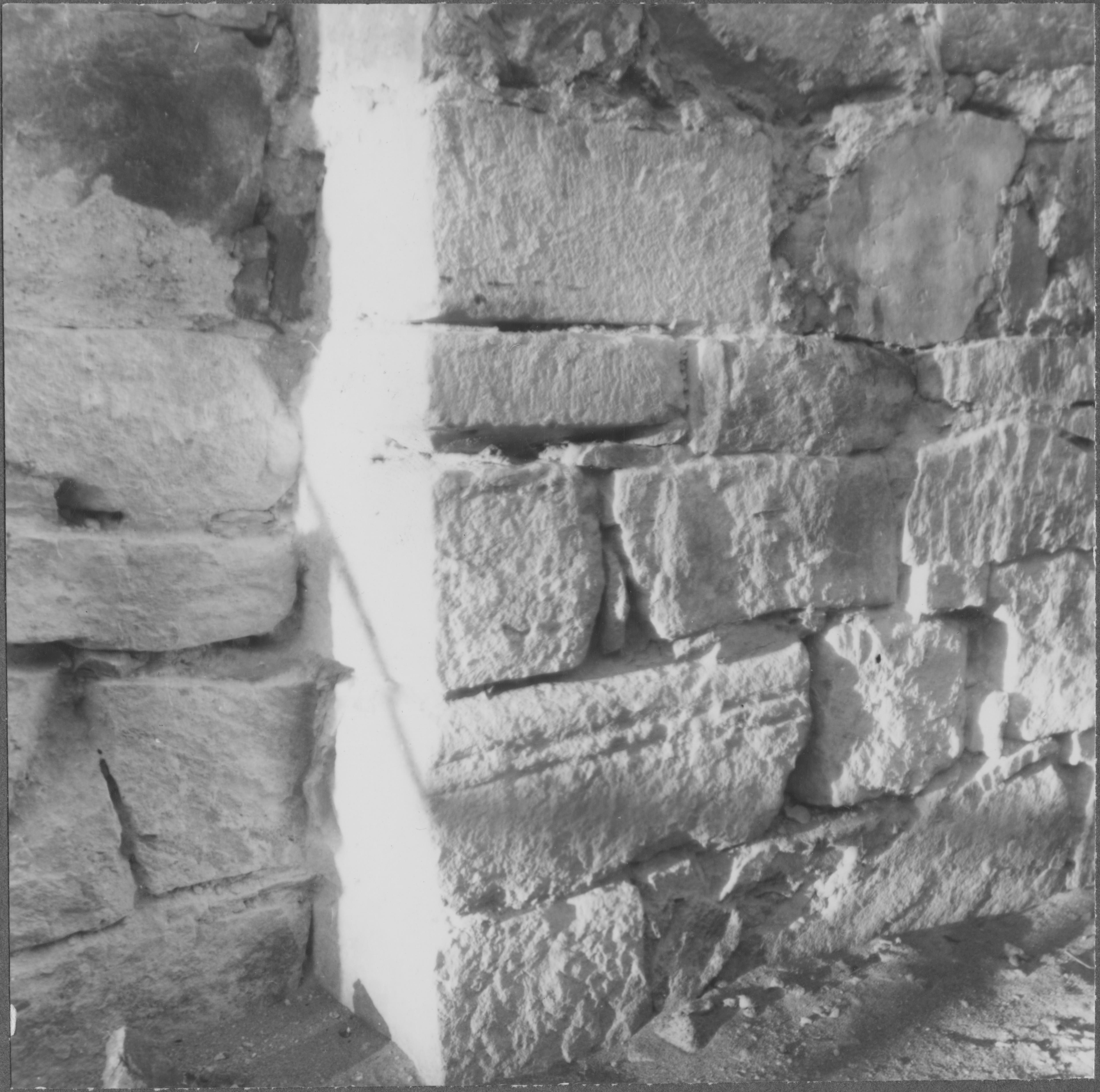 Beskrivning: Stenarna 6 och 7. Murverksdokumentation i samband med att putsen knackades ner. Profilerade