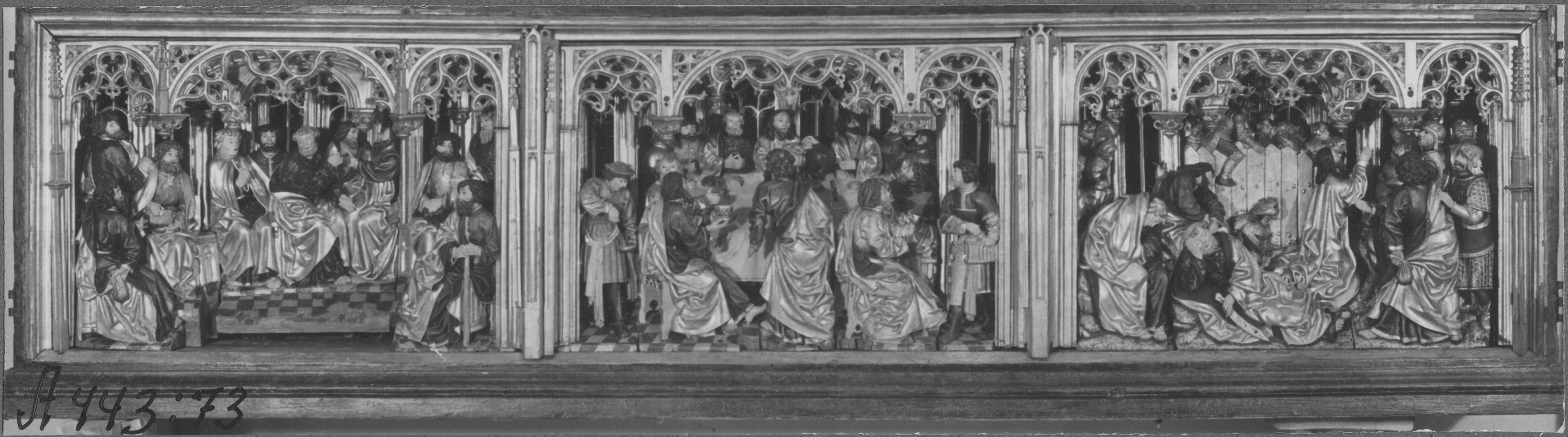 Beskrivning: Beskrivning: Altarskåp av ek. Tillverkad i Brysselverkstad. Från 1500-talets första fjärdedel. Detalj.