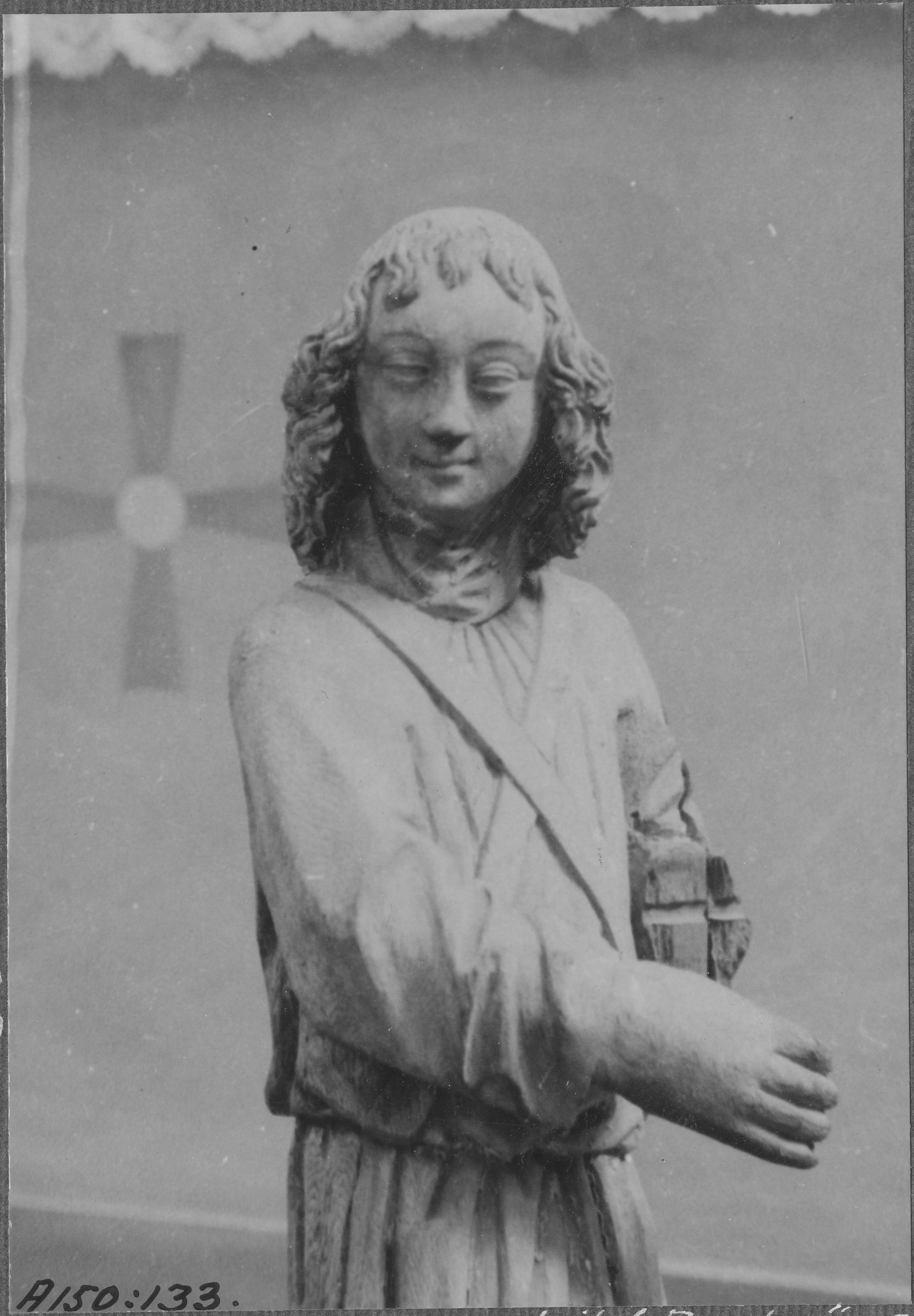 Beskrivning: Träskulptur av ek föreställande ljusbärande ängel. 1400-talets sista fjärdedel.