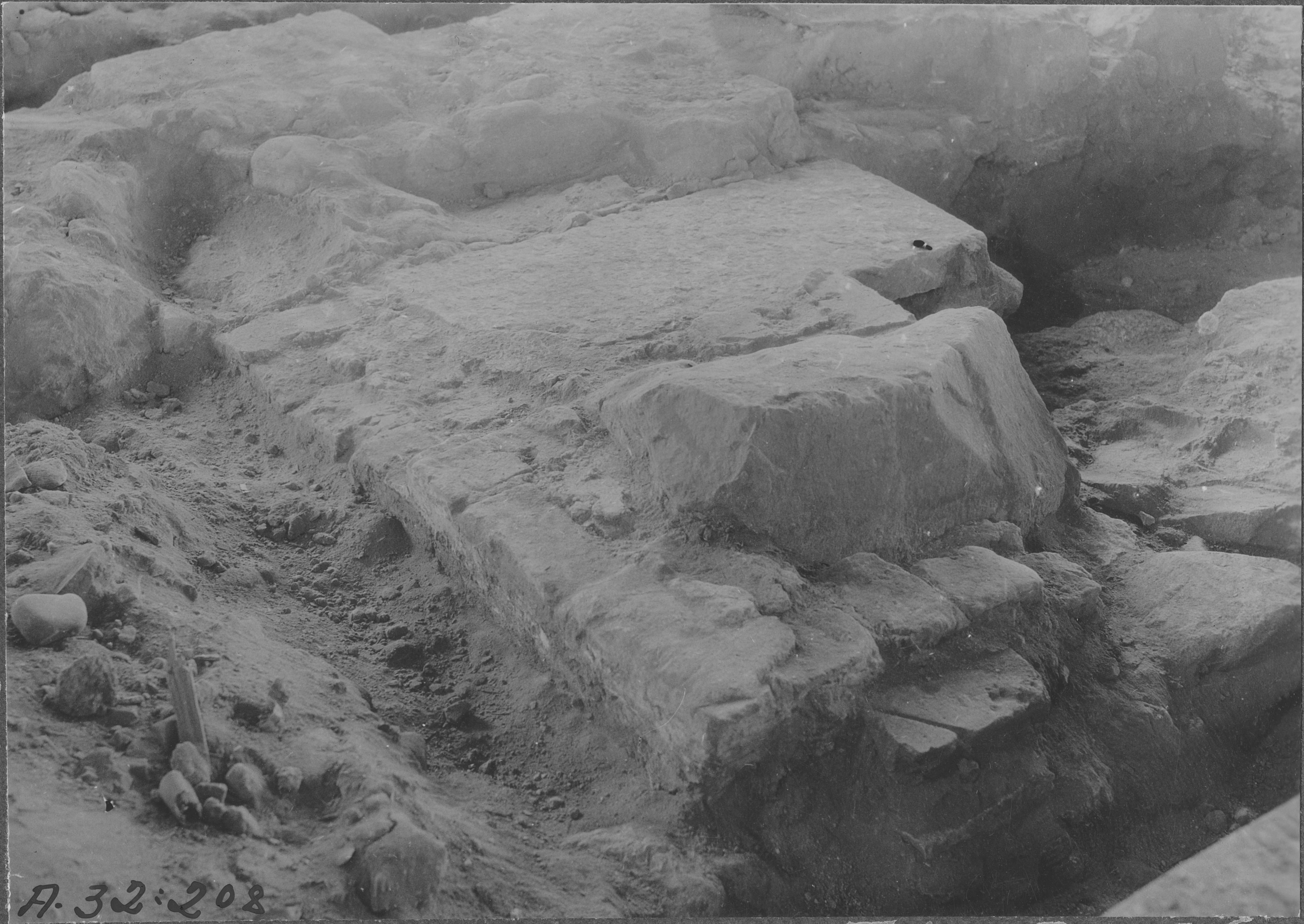 Beskrivning: Troligen grund till en pelare invid norra grunden till det förlängda koret.
