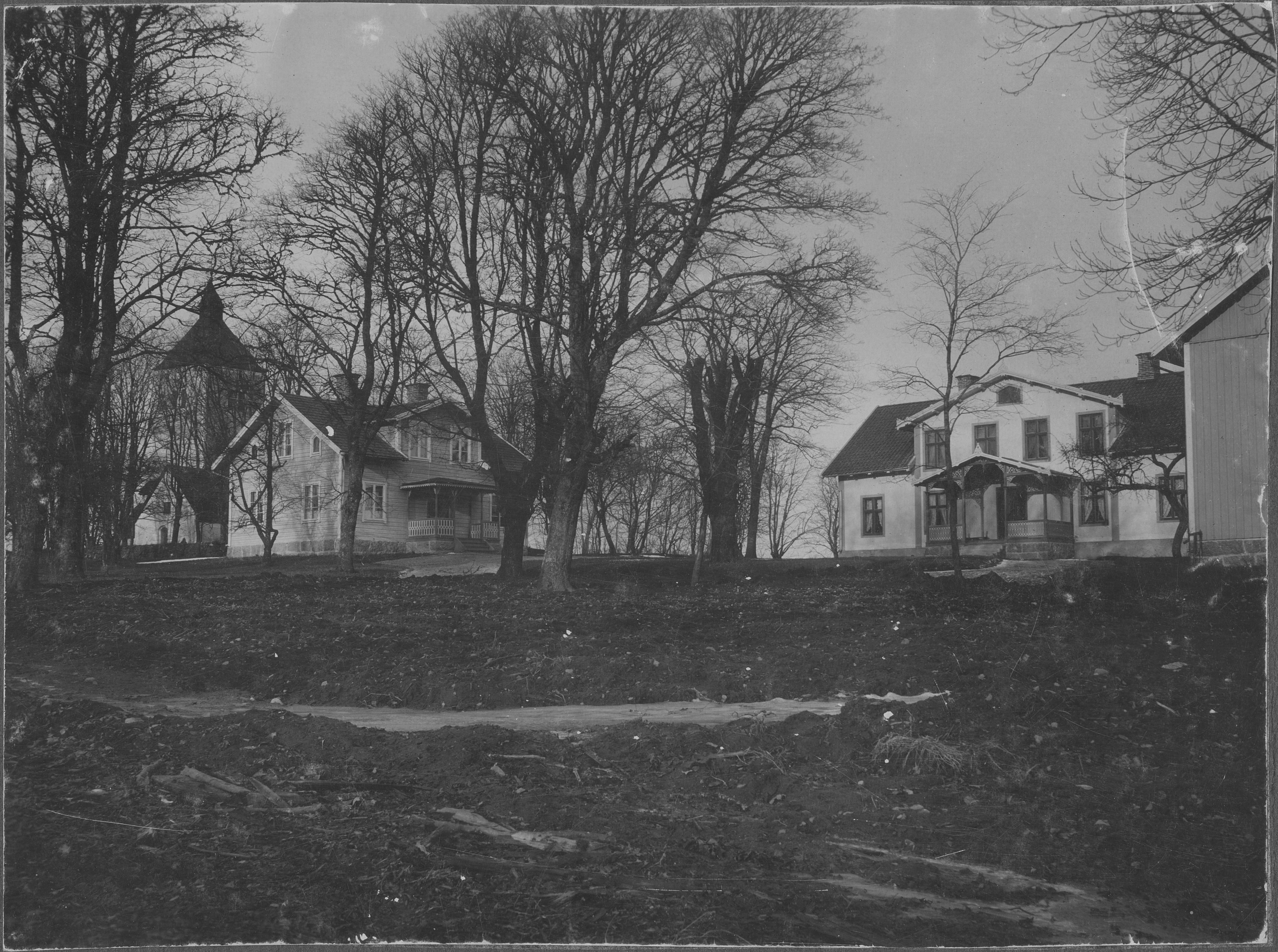 Beskrivning: Kyrkan och prästgården från sydöst.