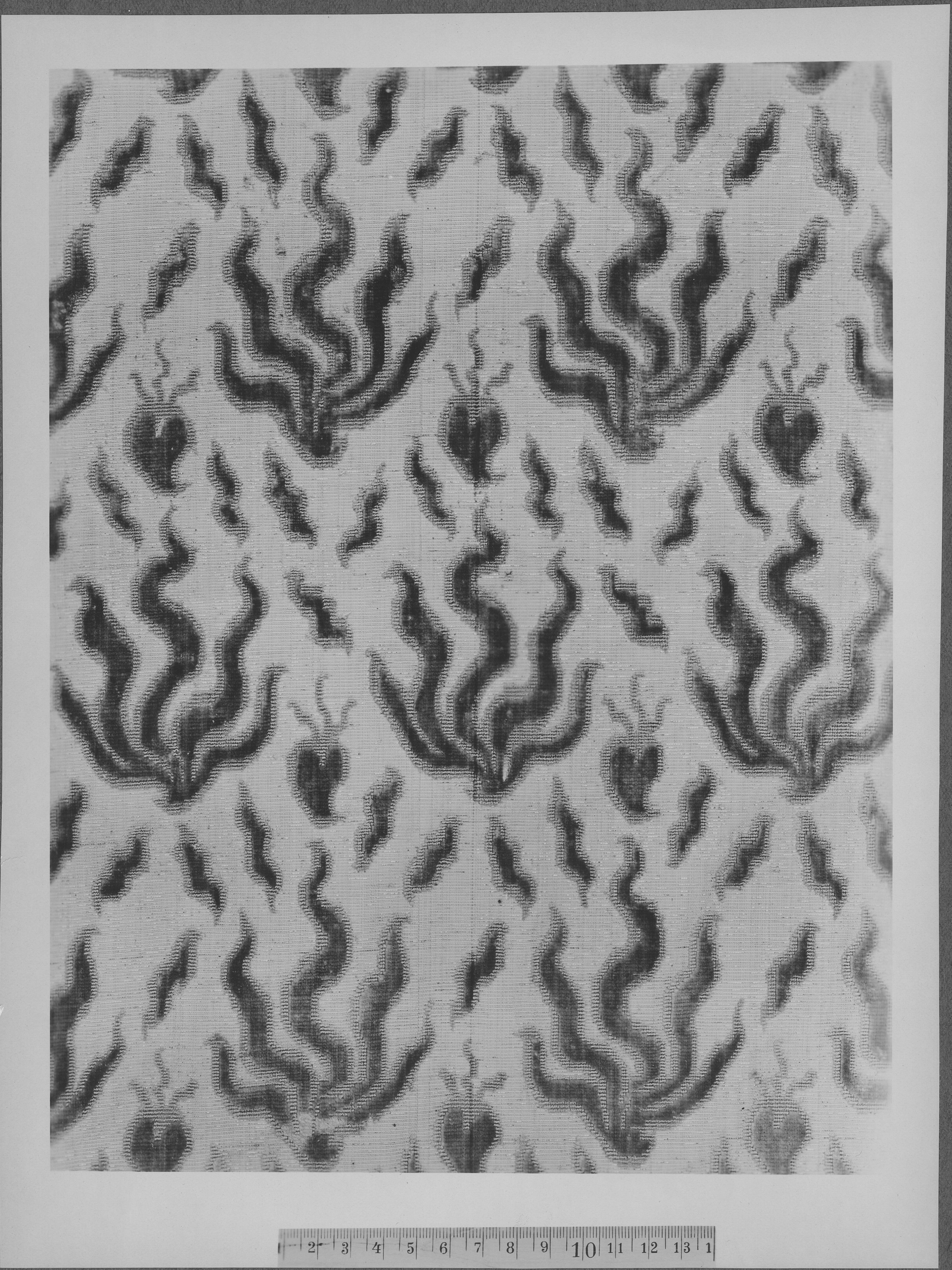 Beskrivning: Detalj av korkåpa. Från utställningen "Kyrklig textilkonst" i Stockholm 1929, nr 154.