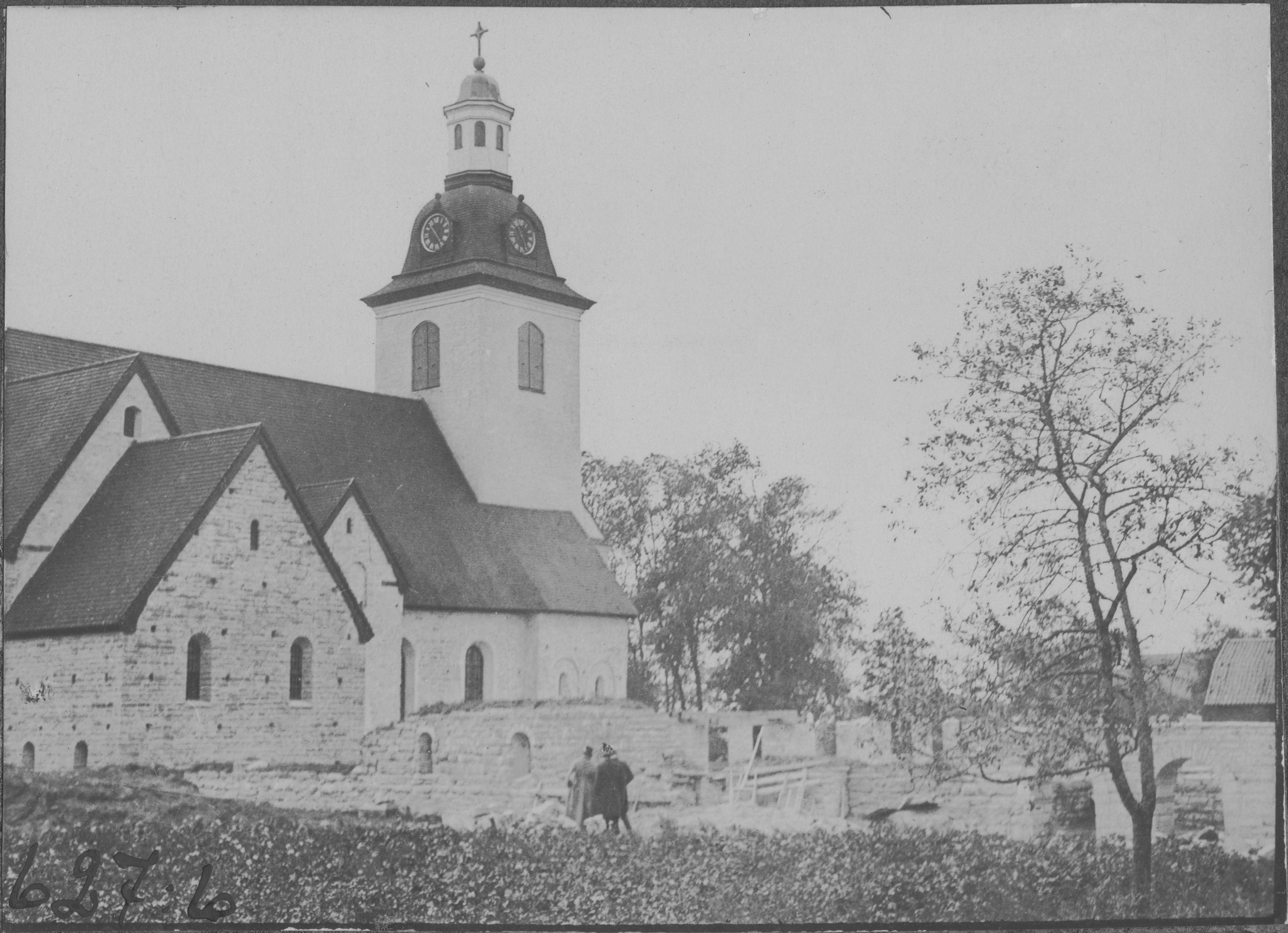 Beskrivning: Kyrkan från nordöst, med klosteranläggningen till höger.