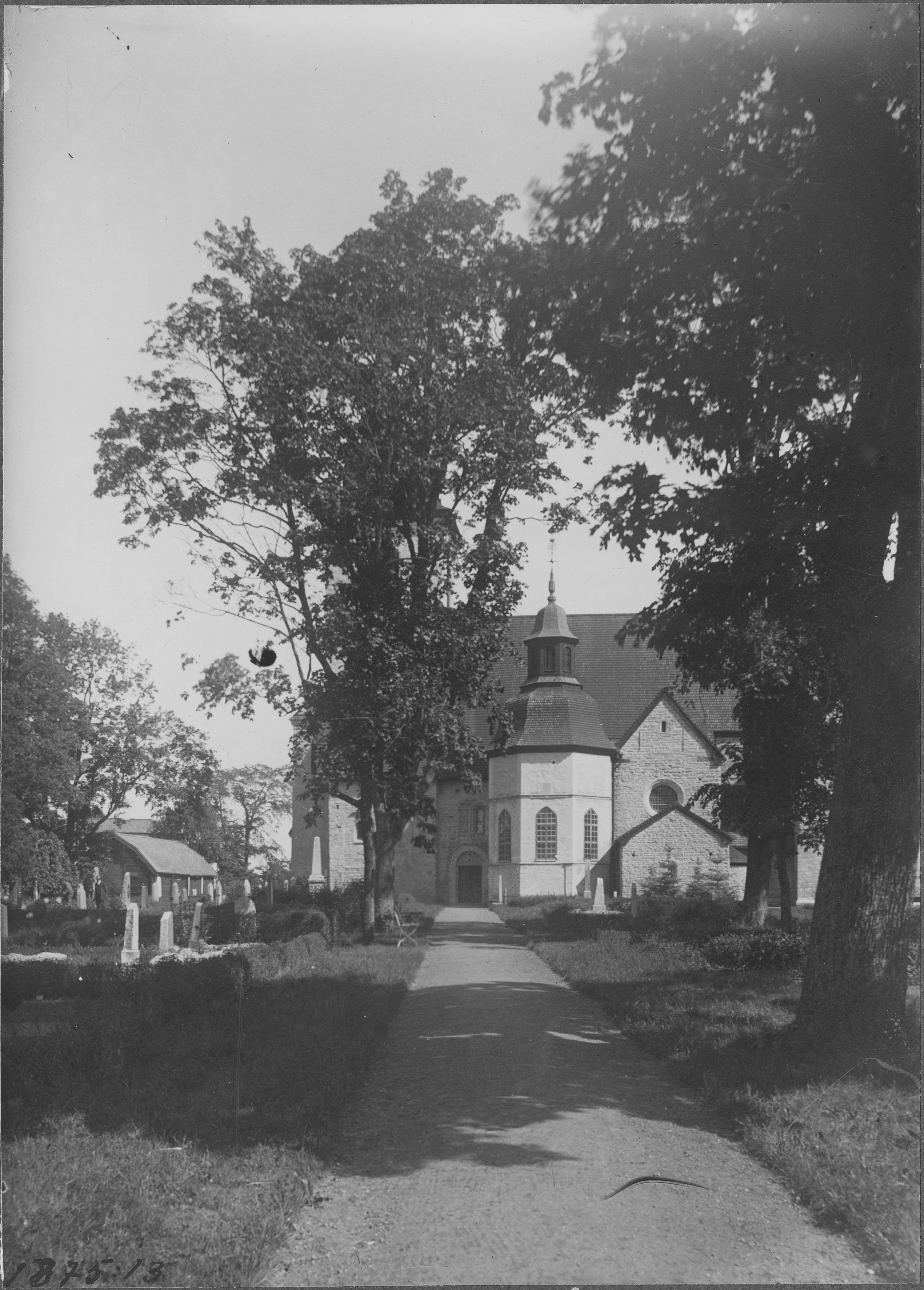 Beskrivning: Kyrkogårdens mittgång från söder samt ätten Douglas gravkor.