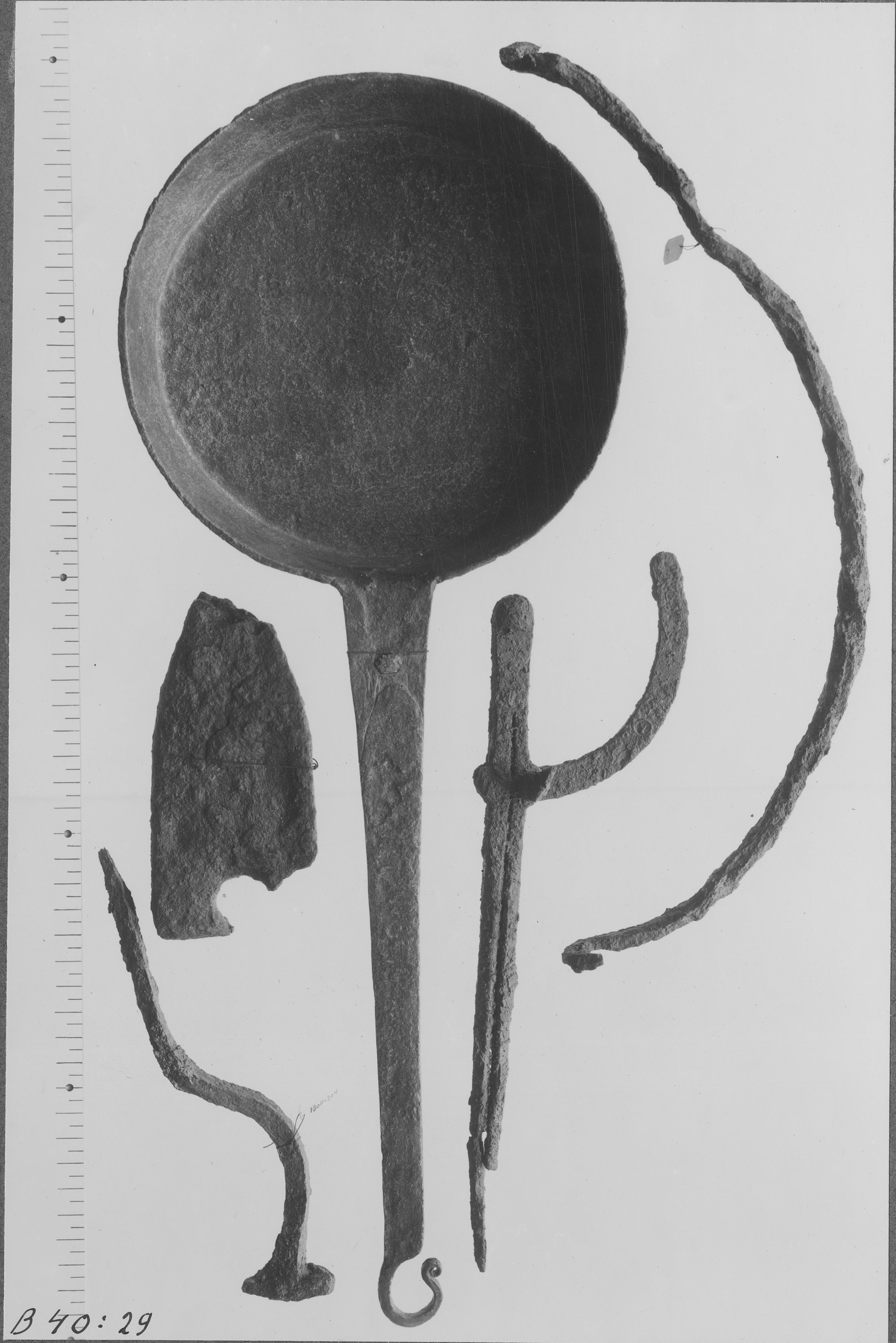 Beskrivning: Stekpanna, passare mm. SHM invnr 18011. Deposition i Vreta kloster.