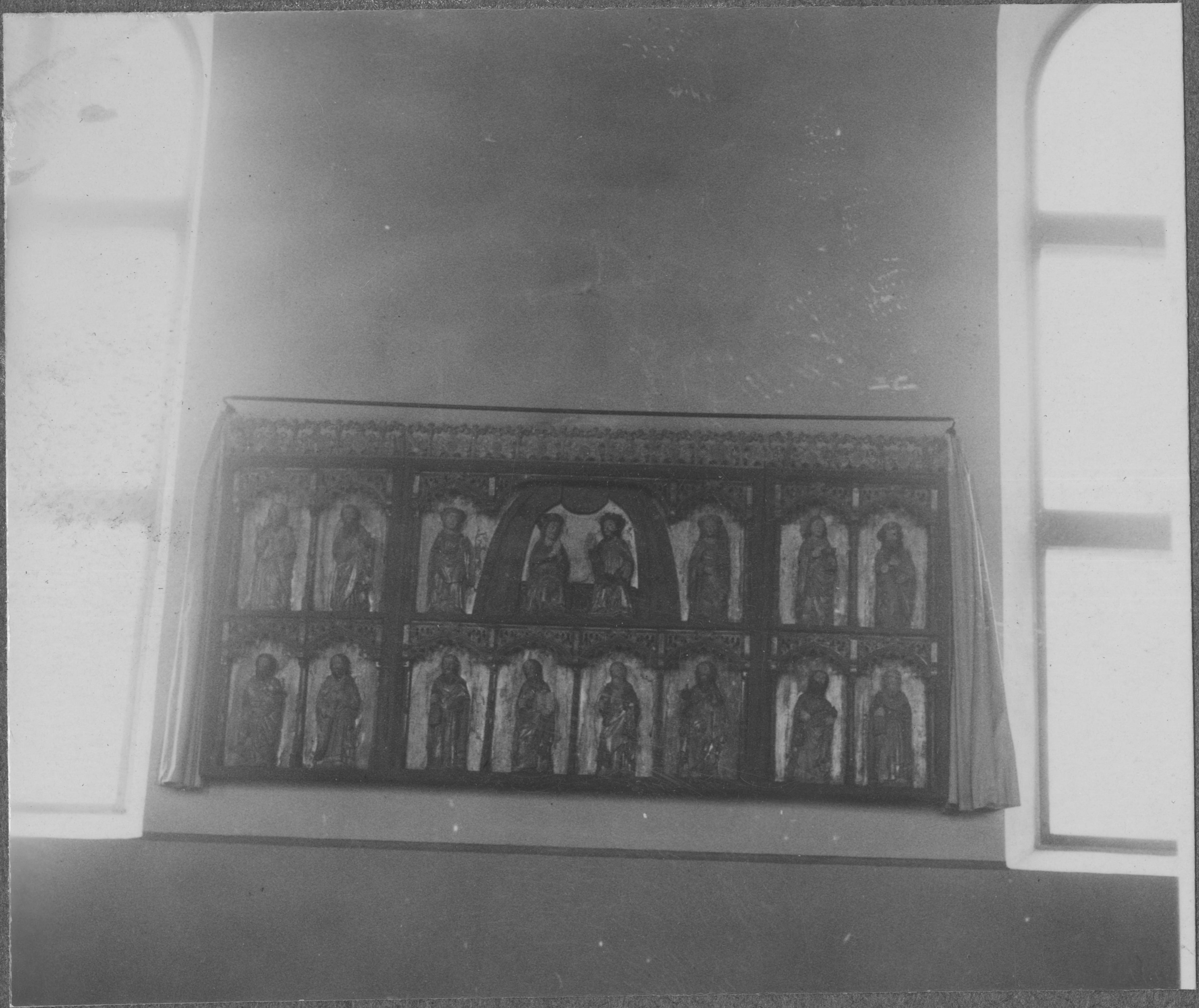 Beskrivning: Medeltida altarskåp på den södra väggen.