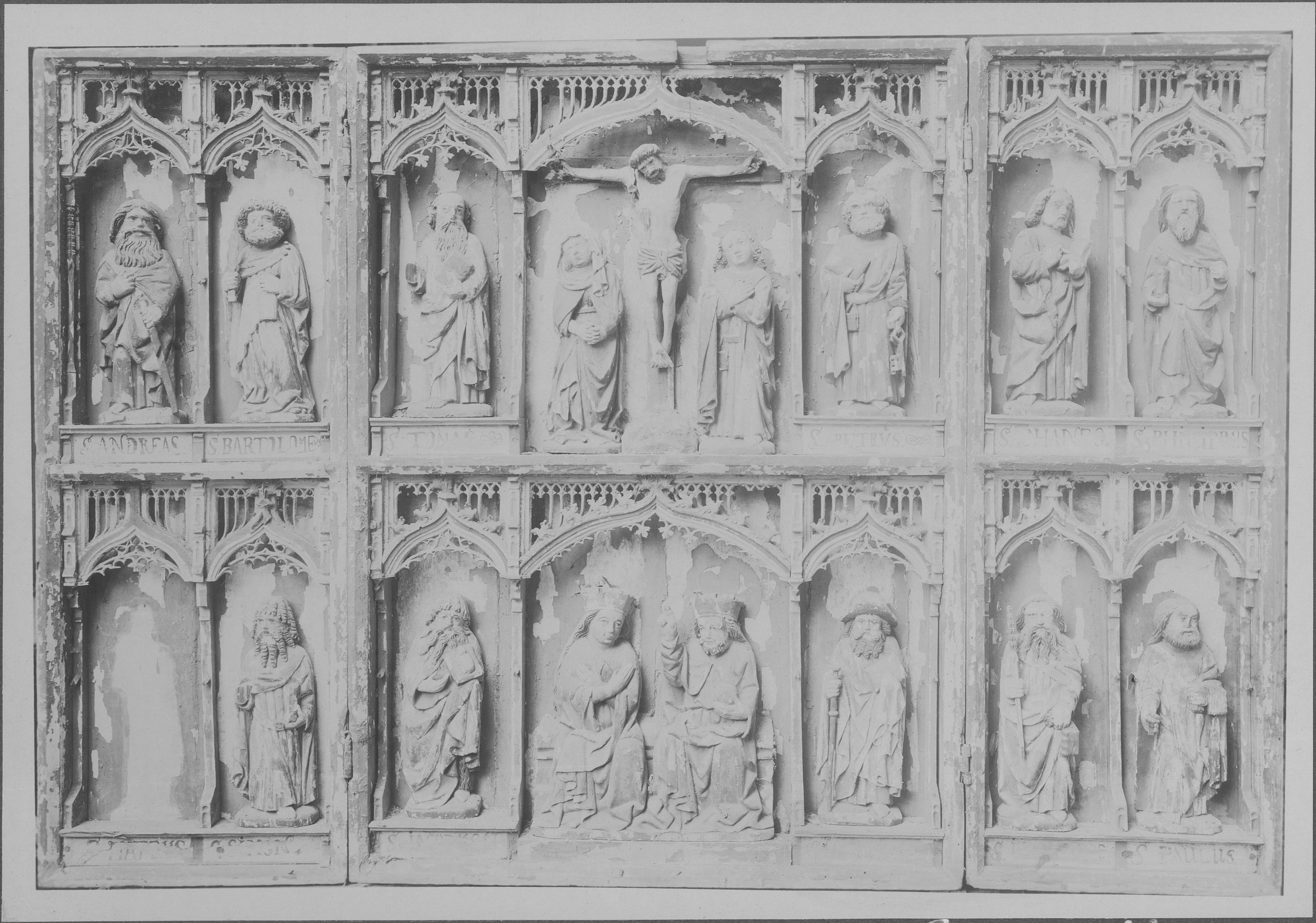 Beskrivning: Altarskåp från 1400-talet, före restaurering.