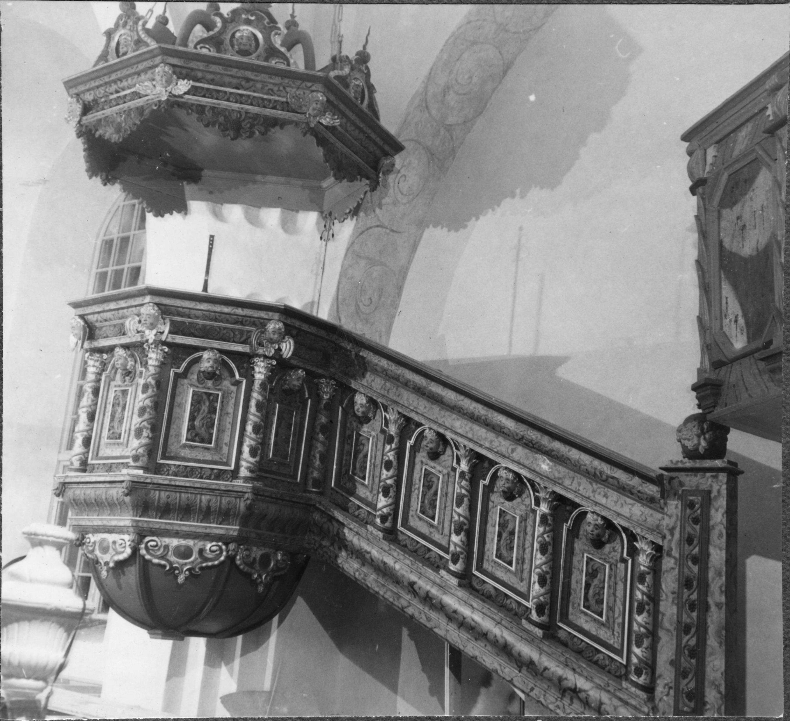 Beskrivning: Predikstol. Efter restaurering.