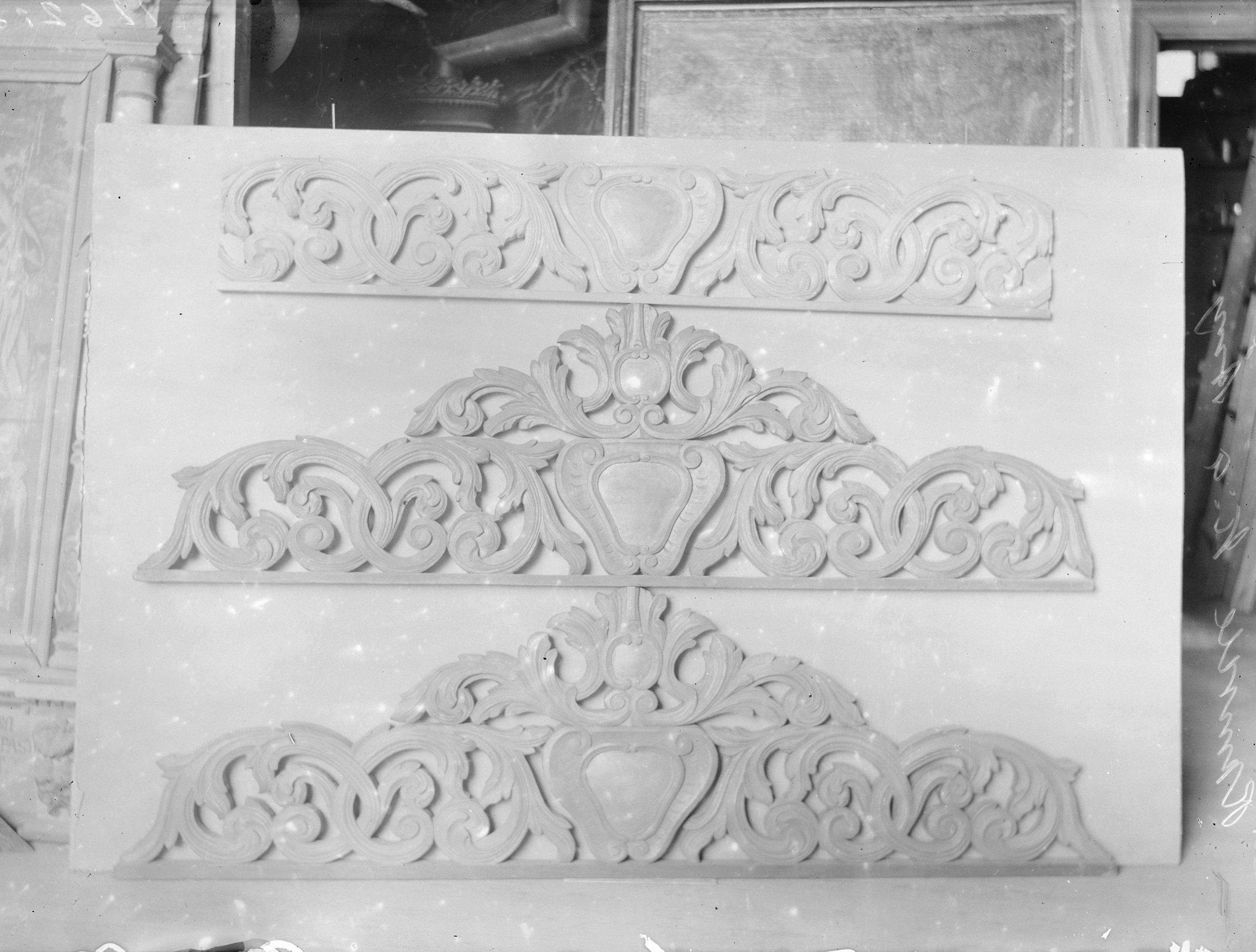 Beskrivning: Ornament i trä. Före konservering (1932-1933).