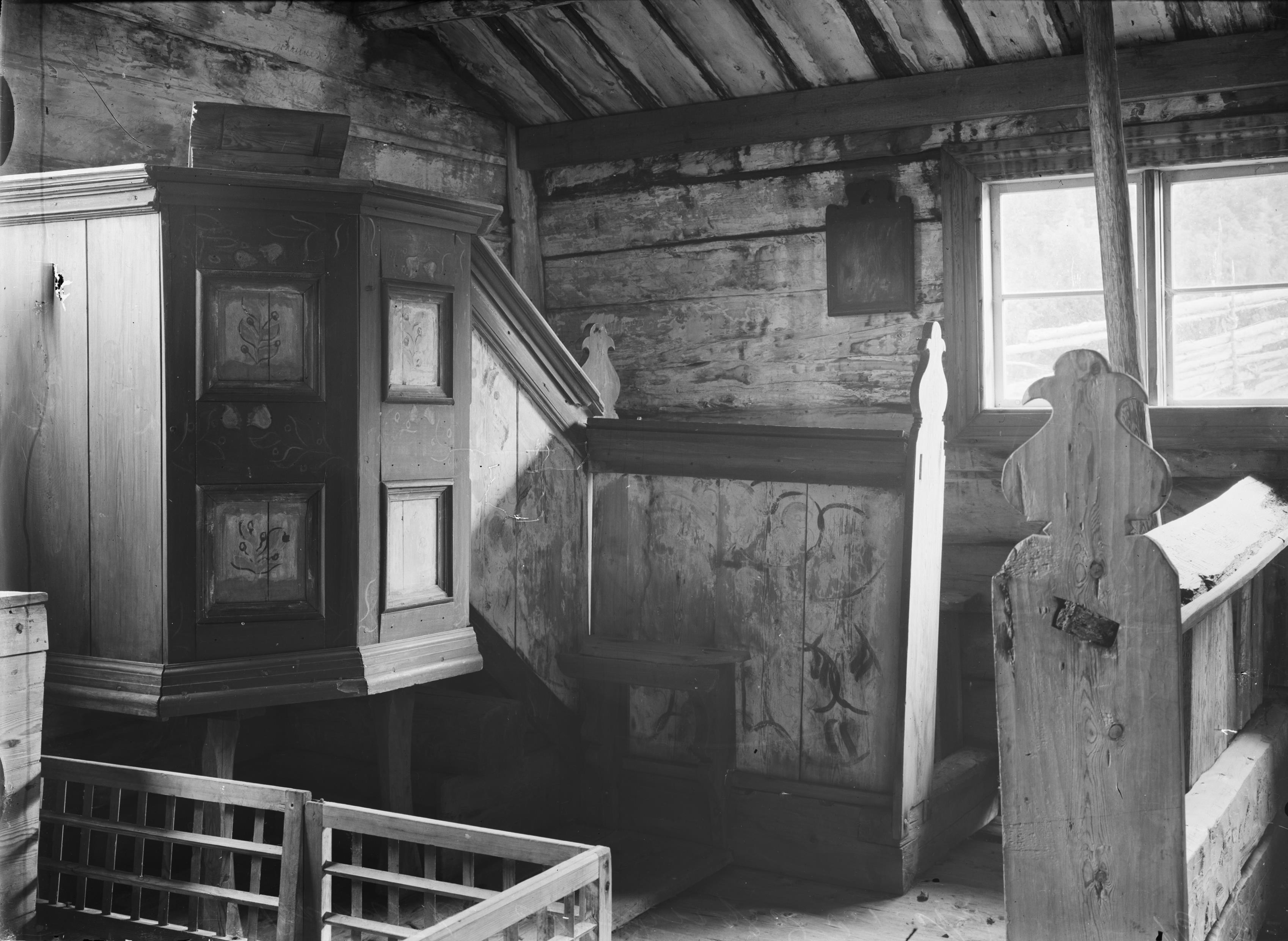 Beskrivning: Interiör mot predikstolen.