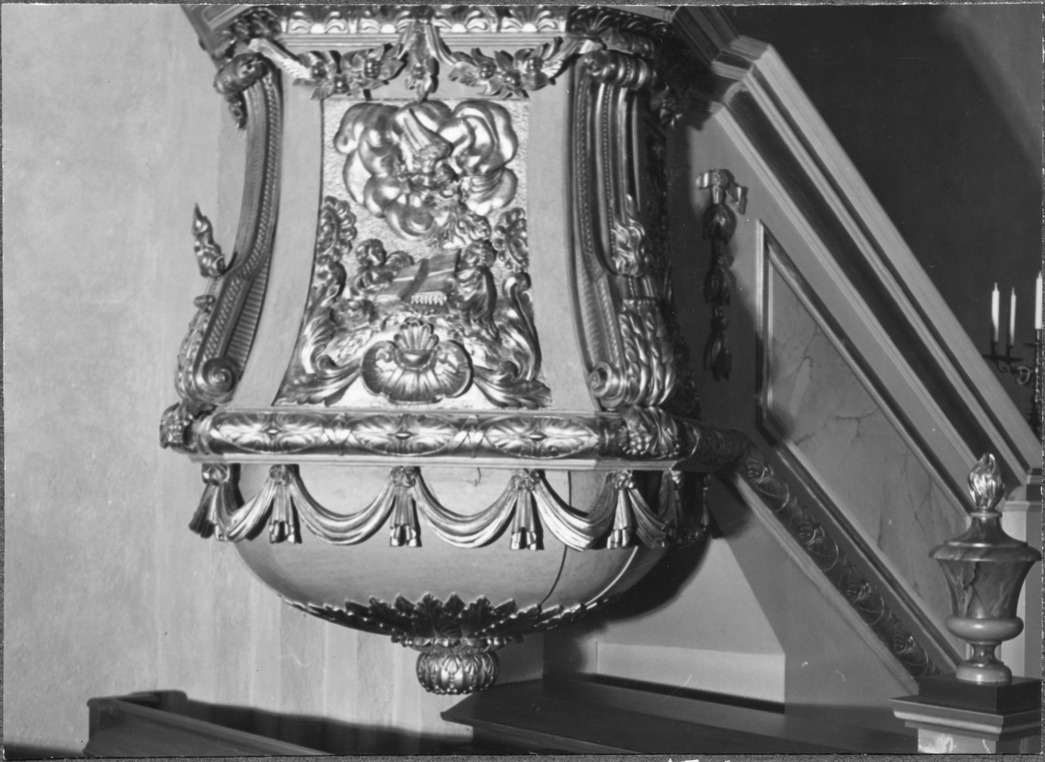 Beskrivning: Predikstol, detalj. Efter konservering.