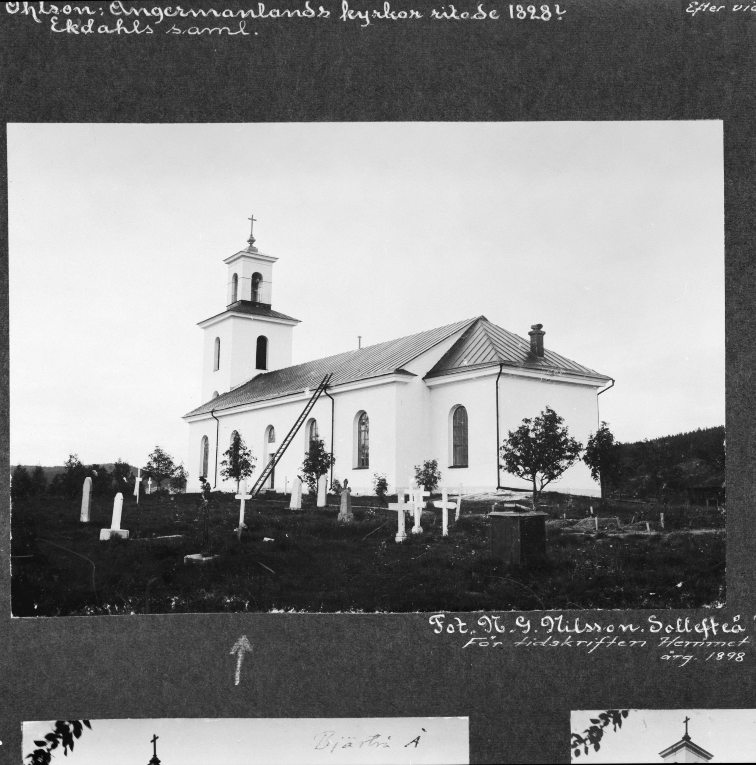 Beskrivning: Kyrkan från sydöst. Foto för tidningen Hemmet, årgång 1898.