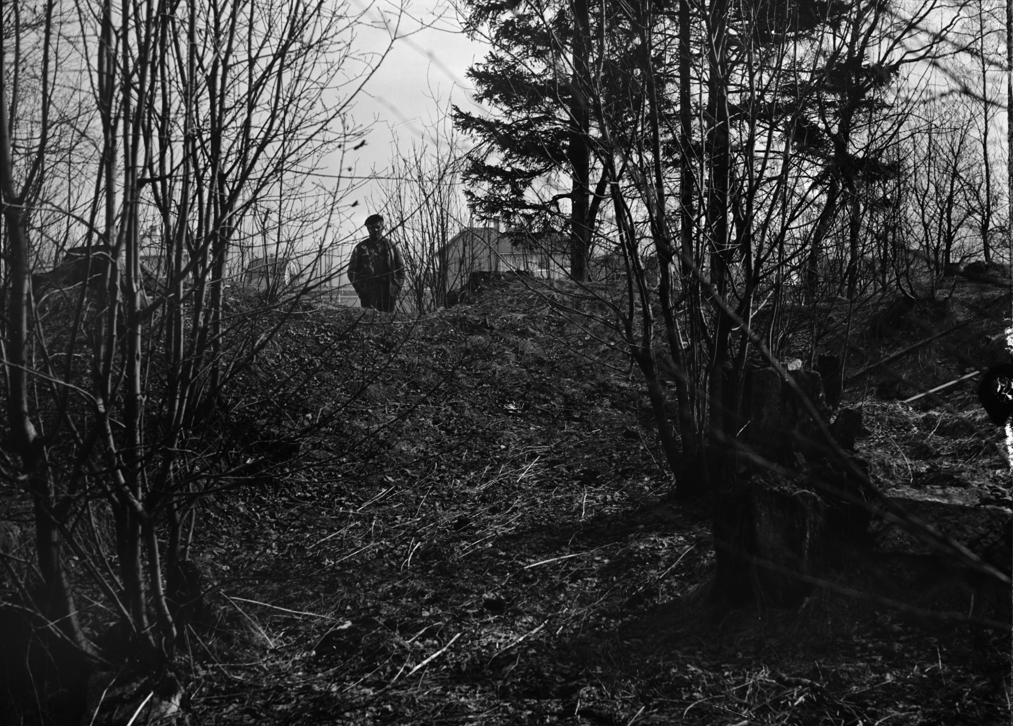 Beskrivning: Kyrkoruinen. det inre östra partiet. Före utgrävningen.