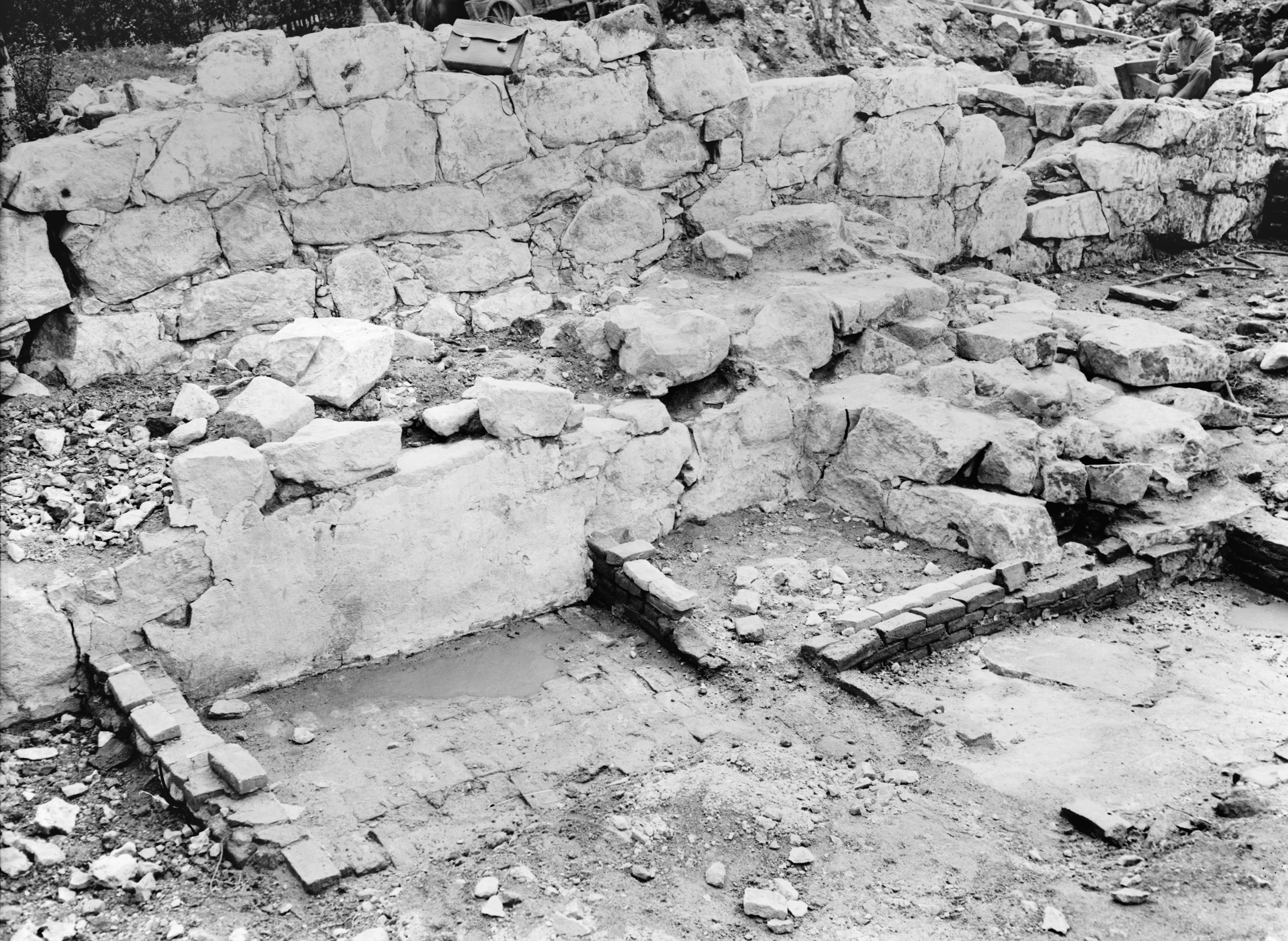 Beskrivning: Kyrkoruinen, äldre södra korväggen med anslutande triumfbågsmur. Under restauring.