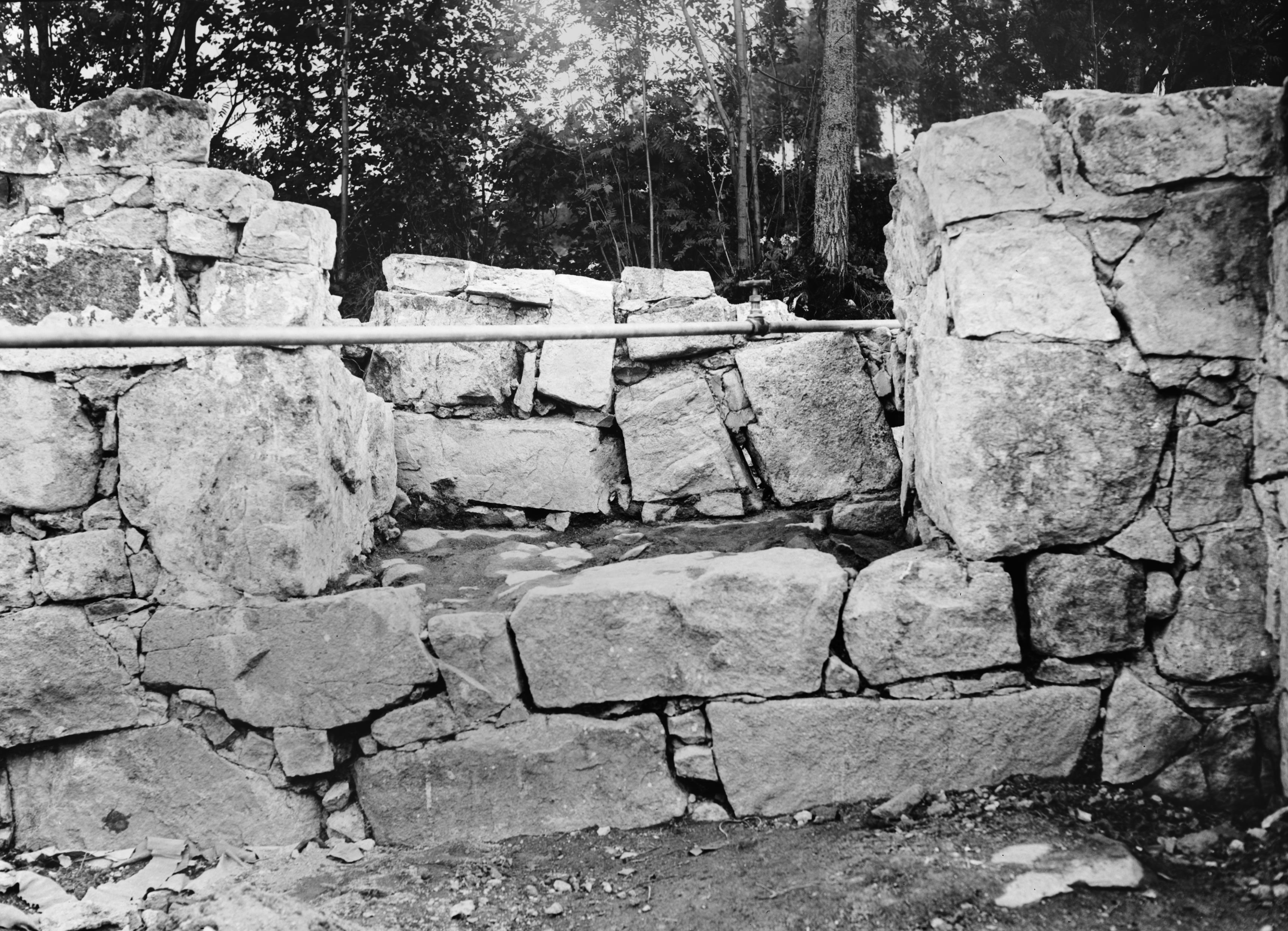 Beskrivning: Kyrkoruinen, stora väggnischen. Under restaurering.